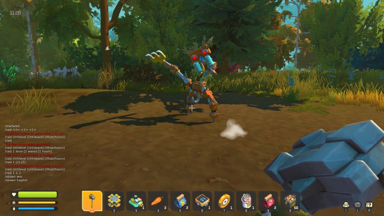 Чтобы получить оружие, для начала нужно отыскать торговца. Обыскивайте горы, пещеры, ориентируйтесь по указателям Keep Out. Чтобы получить оружие, вам нужен фермер в клетке или редкие культуры. Фермера нужно искать внутри выгоревшего леса. После того как окажетесь в этом биоме, ищите в земле дыру. Установите клетку на свой транспорт, используя специальный инструмент.