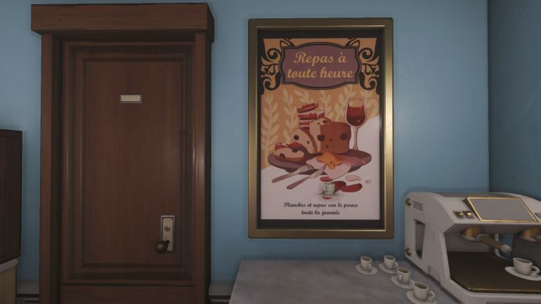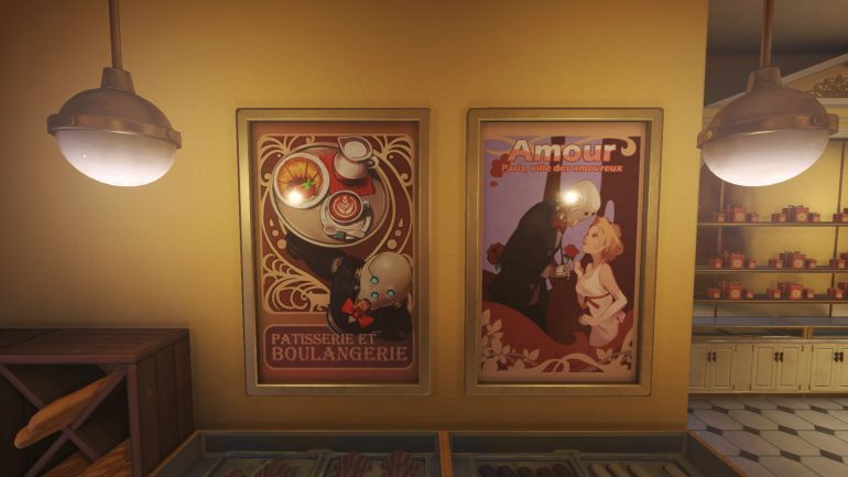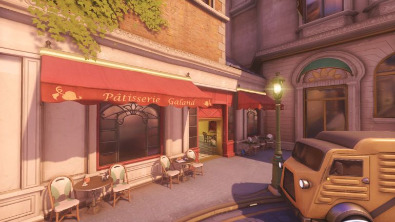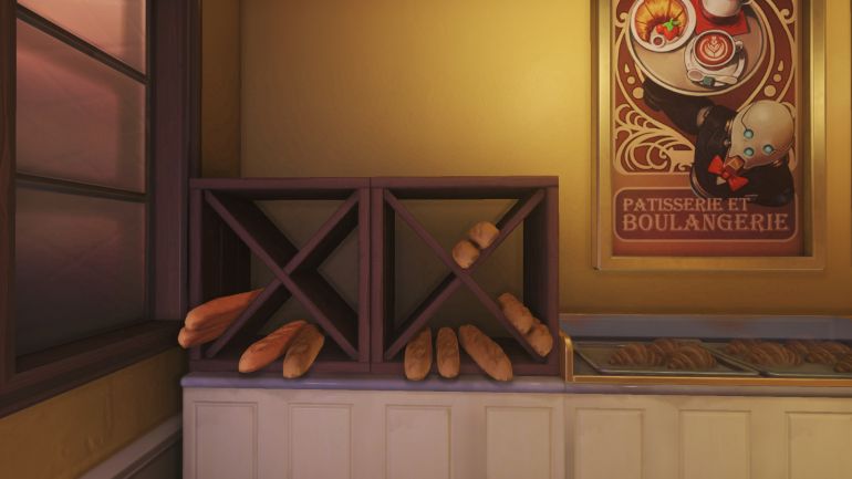 В кондитерской Pâtisserie Galand на главной площади продают багеты, круассаны и сладкие пирожные «макарон». Кондитерская имеет аналог в городе Лион. Они делают торты, миндальное печенье, десерты и конфеты, но без багетов. В мире Overwatch выглядит как стереотип.