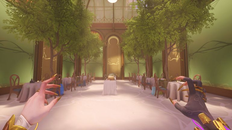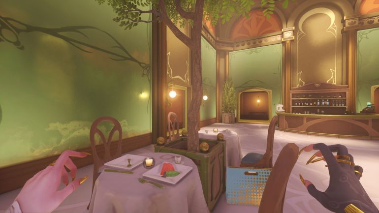 После захвата первого объекта, в отеле открываются двери в банкетный зал с баром для атакующей команды. Между столиками стоят невысокие, пышные деревья.