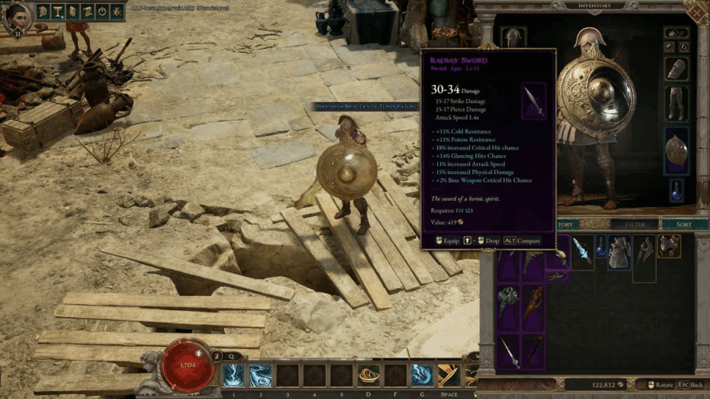 При этом останется неотмеченной область, где следует эту статую починить. Мы показали ее на скриншоте ниже. Принесите все четыре детали, взаимодействуйте с постаментом, и квест завершится. Можете поговорить с Ифитосом, который охранял сломанный посох статуи Главка.
