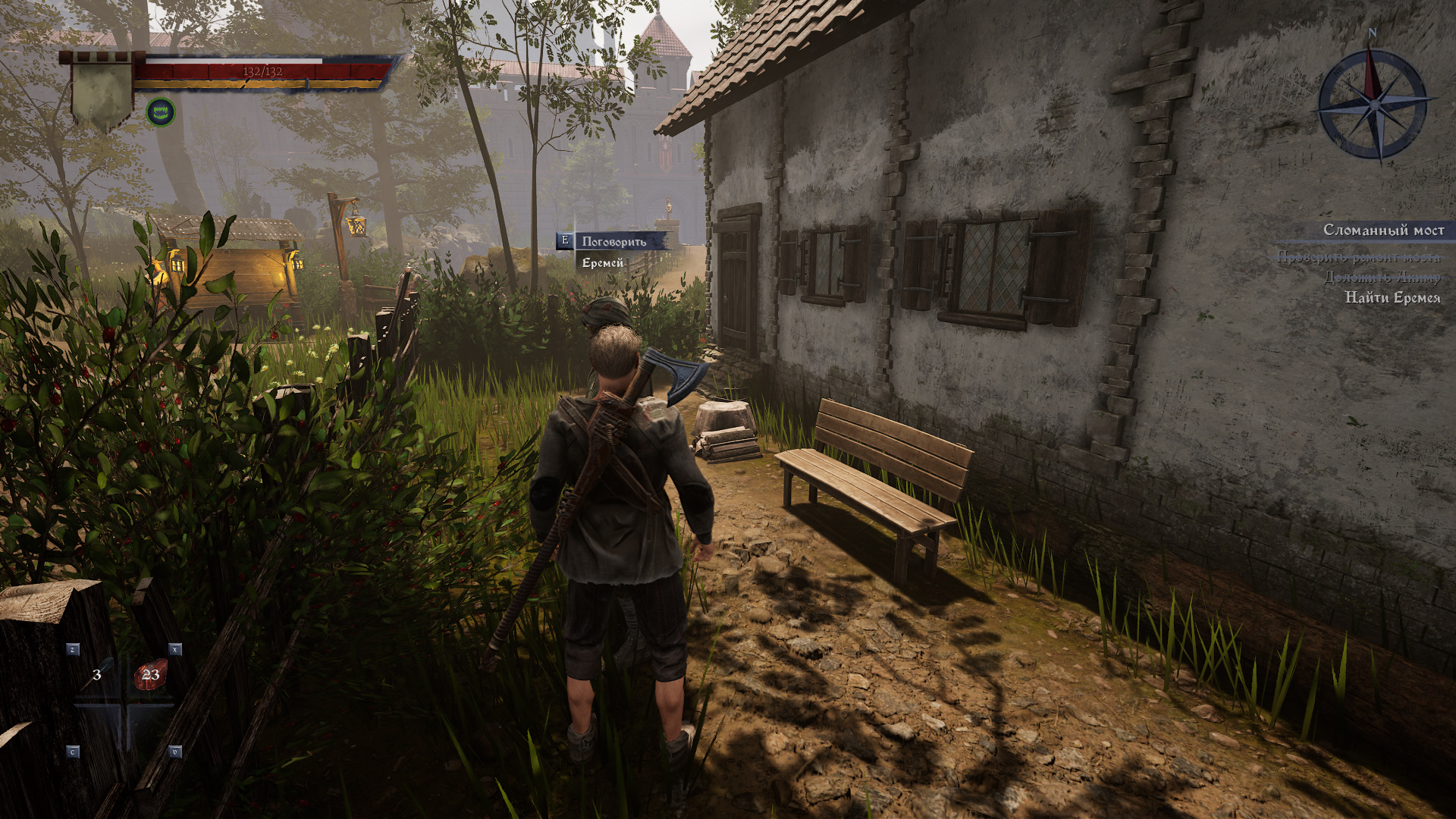 Начать лучше всего с этого задания. Пройдите к разрушенному мосту напротив лагеря лесорубов, на его край, чтобы Тристан заметил, что никто его не ремонтирует. Вернитесь к Акиму, который попросит сыскать Еремея из пригорода Грейшафта.