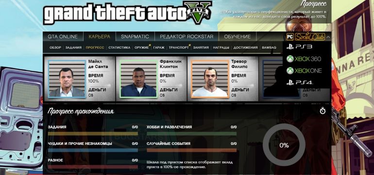 - Если вы играете в GTA 5 с включенной синхронизацией профиля в Social Club, все пройденные случайные события будут отмечаться на удобной интерактивной карте с официального сайта (вкладки «Карьера» — «Прогресс»).