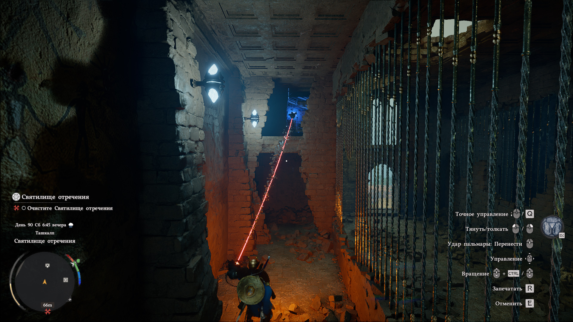 Теперь направляйтесь к реактору и установите оба предмета: ядро — в разъем, а обломок — на колонну. Используйте Силу Аксиомы и «Удар пальмары».
