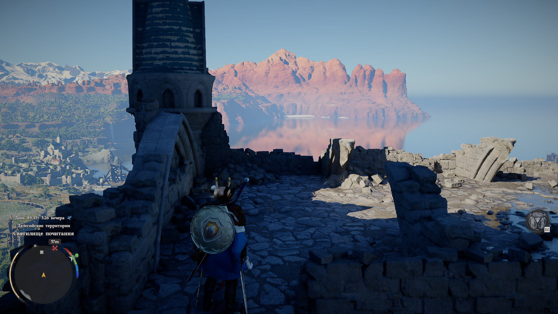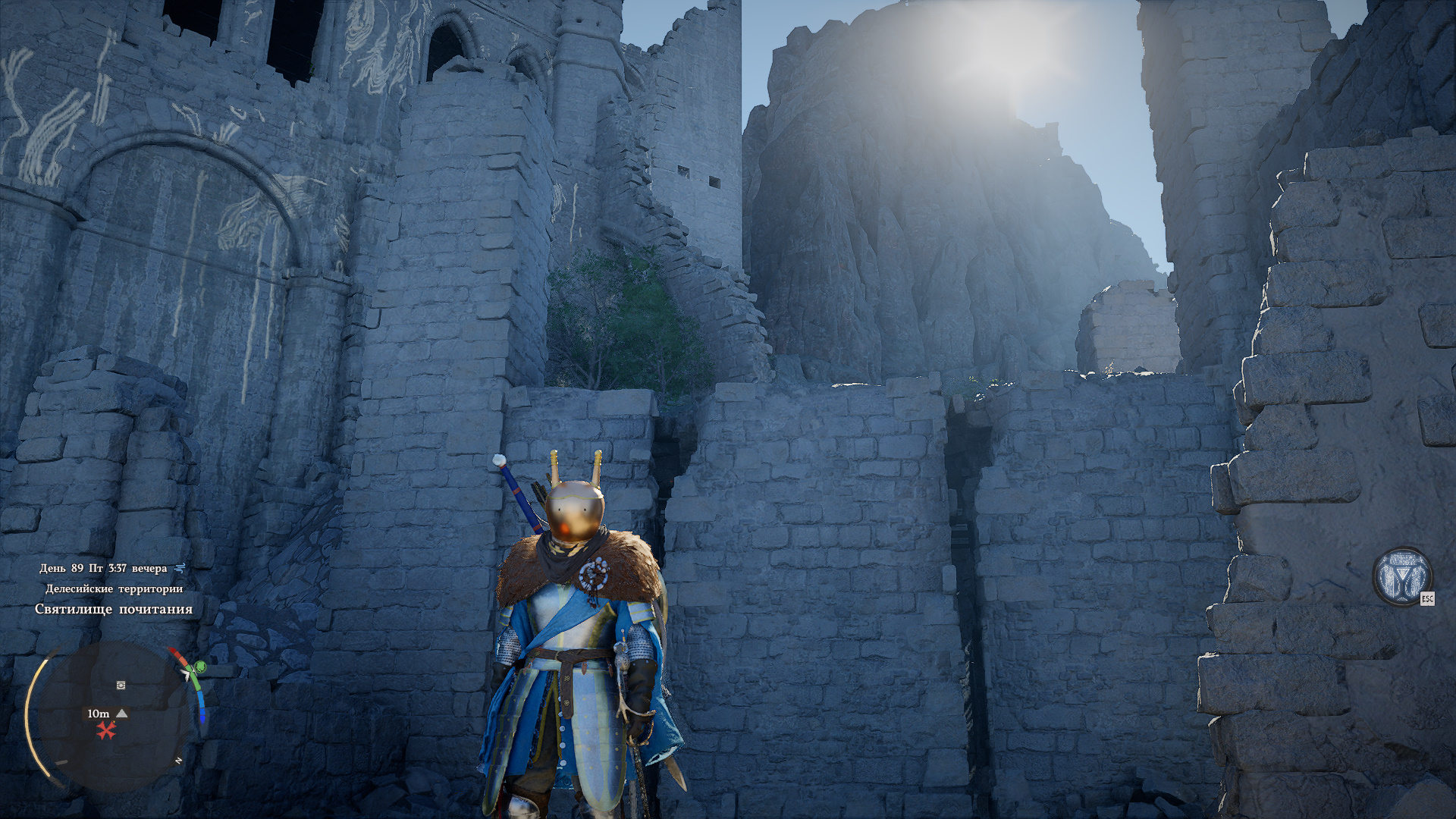 После освобождения вы окажетесь на верхнем уровне руин. Посмотрите на север и спрыгните вниз.