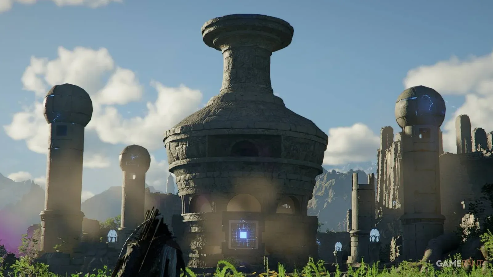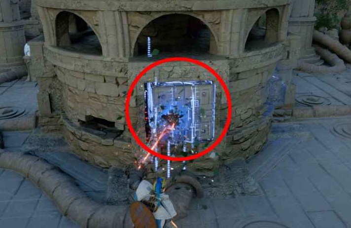 На севере святилища войдите в боковую часть главного здания, на нижний этаж. Найдите купол сломанной опоры. Используйте «Силы Аксиомы» (удерживайте TAB), переместите эту часть вверх и вынесите из здания. Поместите обломок на вершину сломанного пилона (вокруг реактора их четыре, и только один сломан). Если все сделано правильно, увидите, как вокруг него летают зеленые листья. Соедините обломок с помощью «Удара пальмары». Заберитесь на вершину купола, подпрыгните и щелкните колесиком мыши.