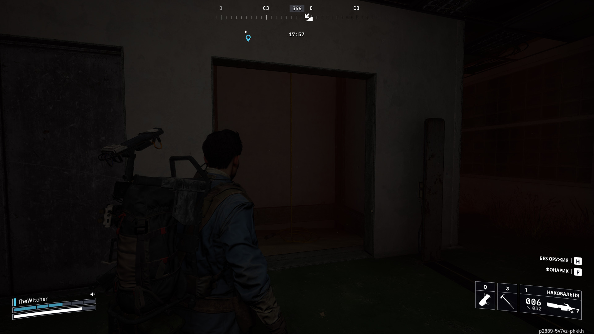 Перемещайтесь в нее, найдите снизу шахту лифта с тросом, по которому можно подняться наверх.