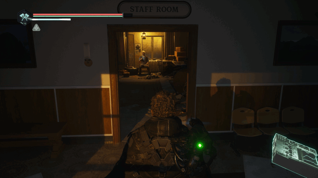 Войдите в здание и откройте дверь слева. Победите монстра и подберите записку, которую тот охранял (L-6).