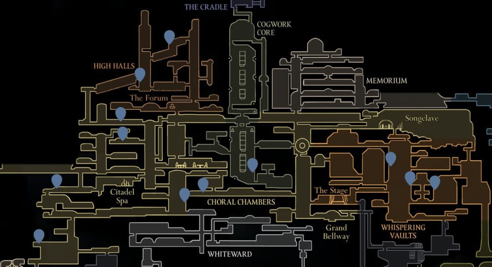 - Одиннадцатое — останьтесь в Глубоких доках и двигайтесь направо к Дальним полям. В следующей области на потолке будет еще одно Тело пустоты, окружённое врагами.