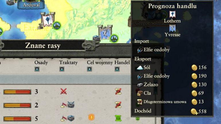 Дипломатические отношения также зависят и от выбранной расы. Между Темными и Высшими Эльфами существует серьезная вражда, поэтому у них по умолчанию выставлен штраф к отношениям «-60».