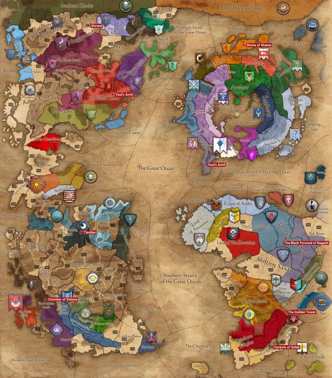 Чтобы контролировать Великий Вихрь, каждая раса должна выполнить пять ритуалов (позволит контролировать определенную часть ресурсов). Несмотря на то, что эти ресурсы имеют разные названия для каждой расы (фрагменты для Высших Эльфов, свитки для Темных Эльфов и т.д.), все они работают идентично. Вы получаете по одному баллу каждый ход за любую подконтрольную провинцию. Дополнительные очки может получить за завершение миссий (на самом деле это первостепенная причина, почему их следует завершить).
