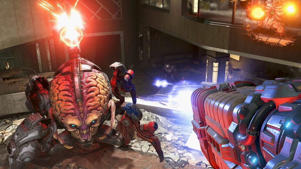 Тем более, тут есть от чего отдохнуть. По сравнению с предыдущей частью бои в DOOM Eternal стали еще злее и динамичнее, хотя, казалось бы, ну куда больше. На то есть две причины. Первая — балансировка уже существующих монстров. Тот же какодемон перестал быть грушей для битья. Его плазменные шары летят быстрее, а сам он не ограничивается одной атакой. Теперь он пускает очередь снарядов и охотней рвется в ближний бой.