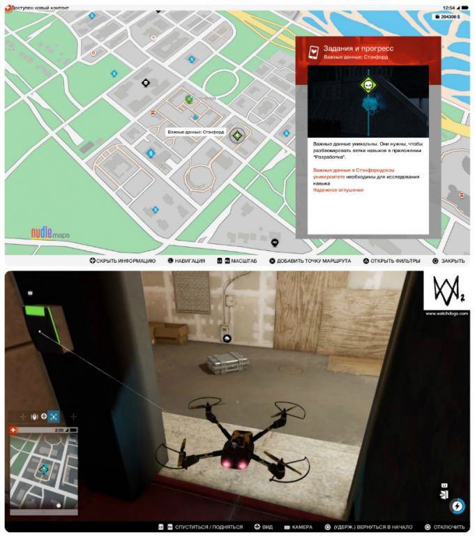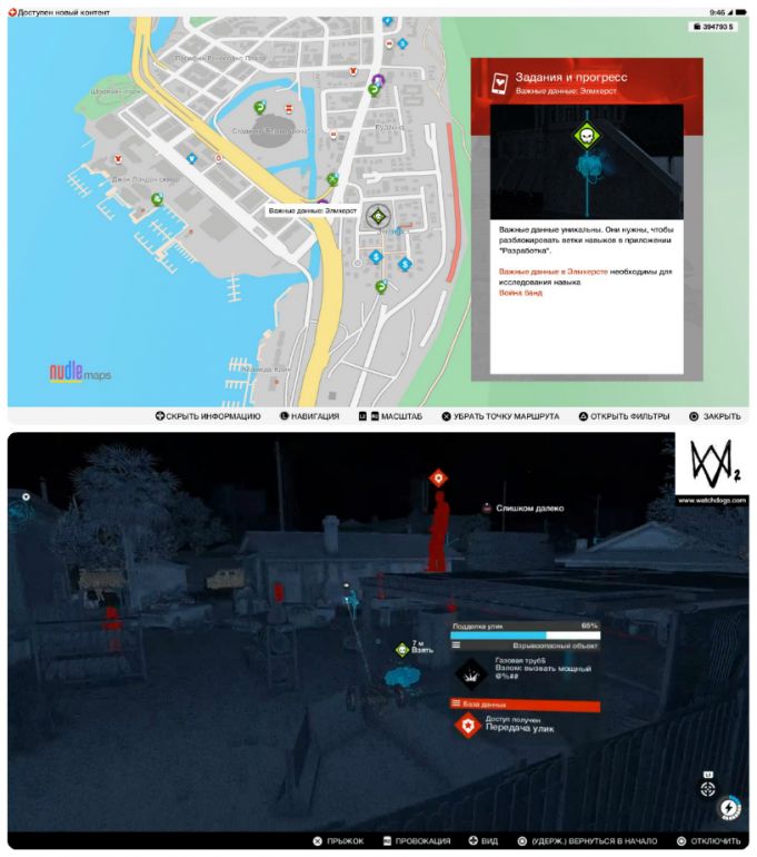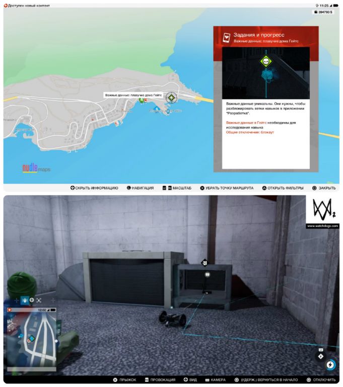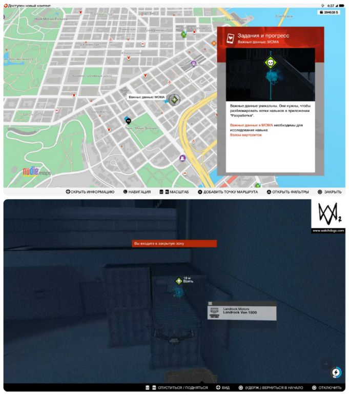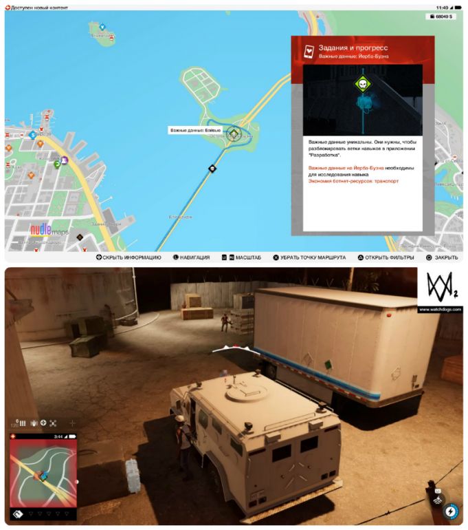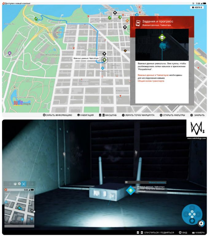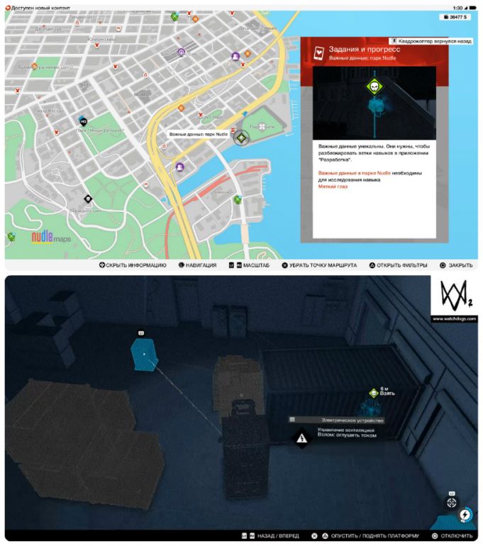- Собирать важные данные можно с начала игры и в произвольном порядке. Однако, прежде чем отправляться на их поиски, настоятельно рекомендуем приобрести квадрокоптер и открыть умение «Взлом транспорта: направление» — это сильно упростит вам задачу.