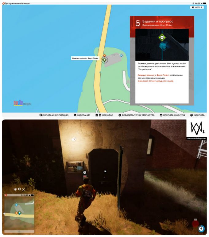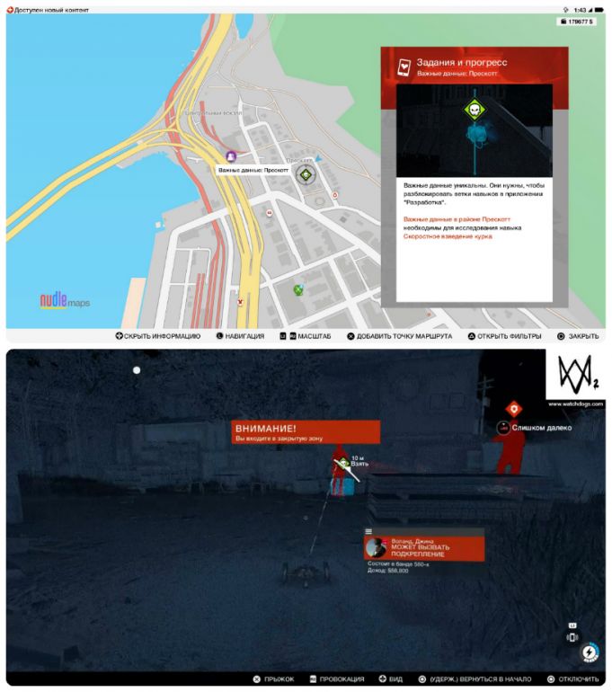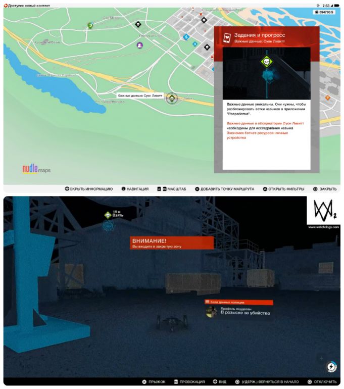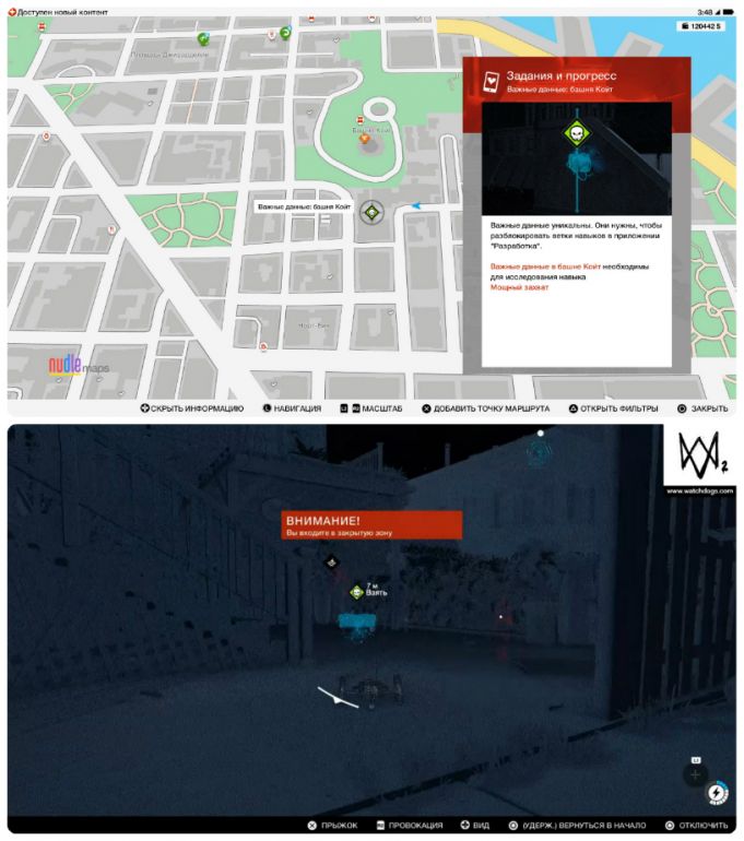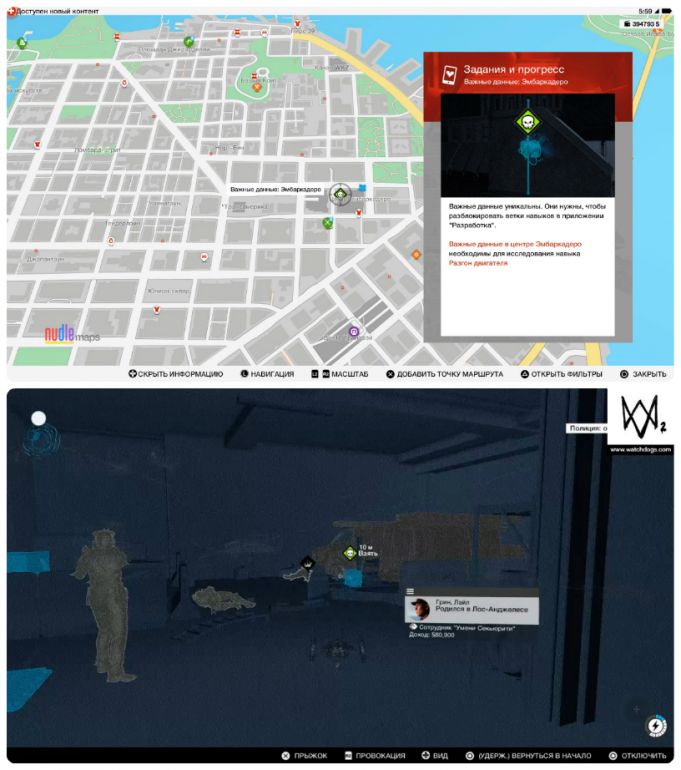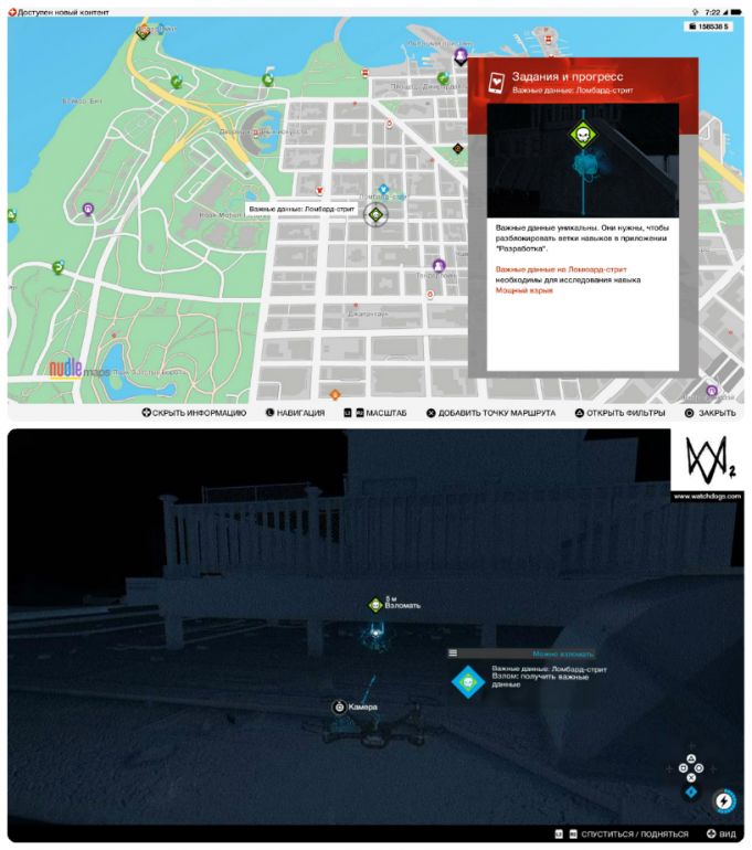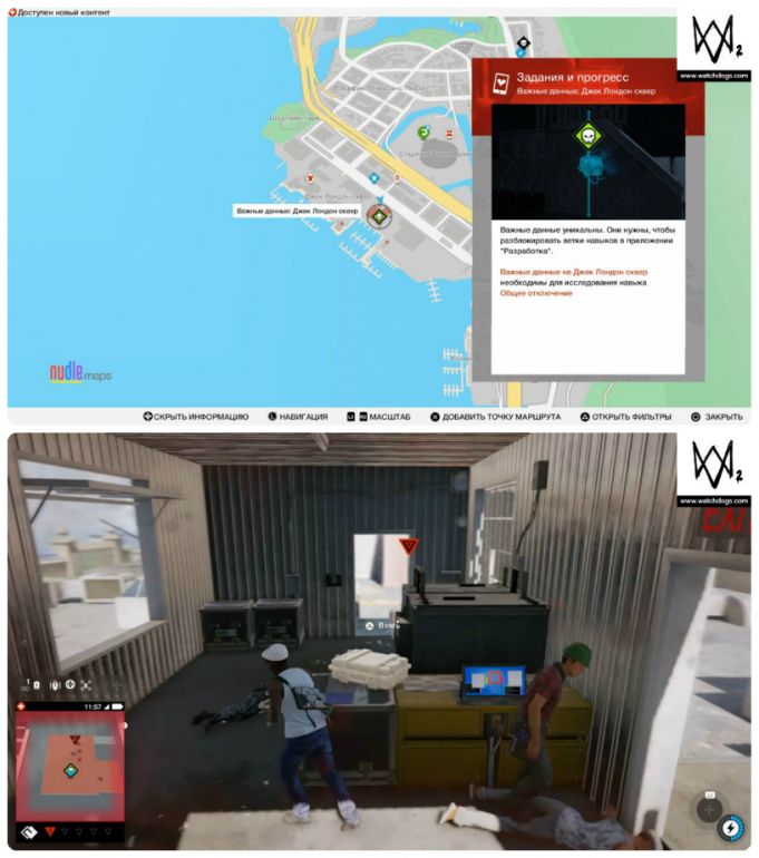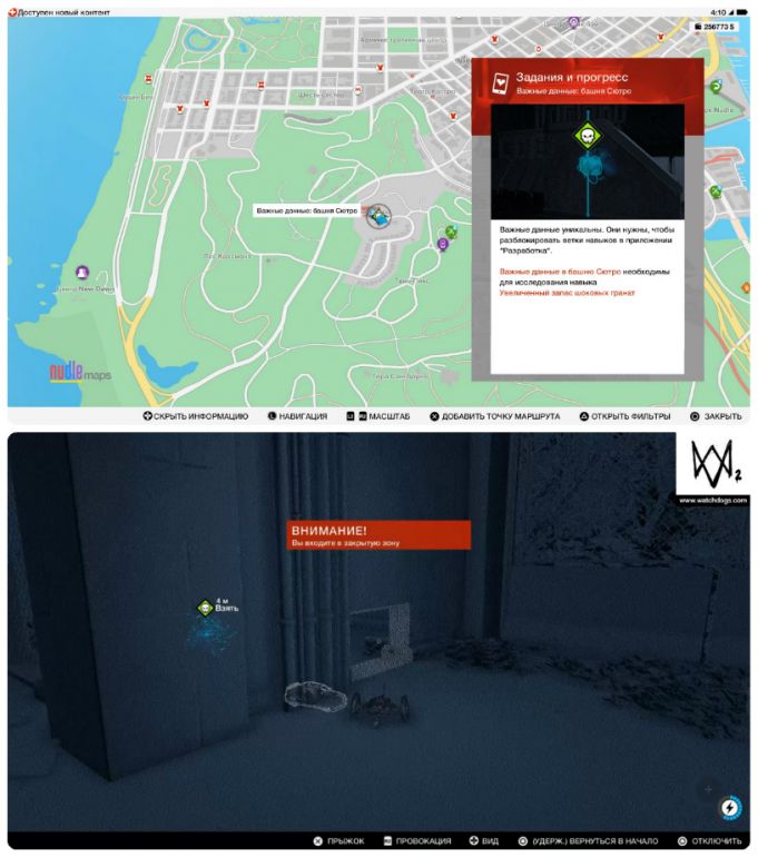 - Собирать важные данные можно с начала игры и в произвольном порядке. Однако, прежде чем отправляться на их поиски, настоятельно рекомендуем приобрести квадрокоптер и открыть умение «Взлом транспорта: направление» — это сильно упростит вам задачу.