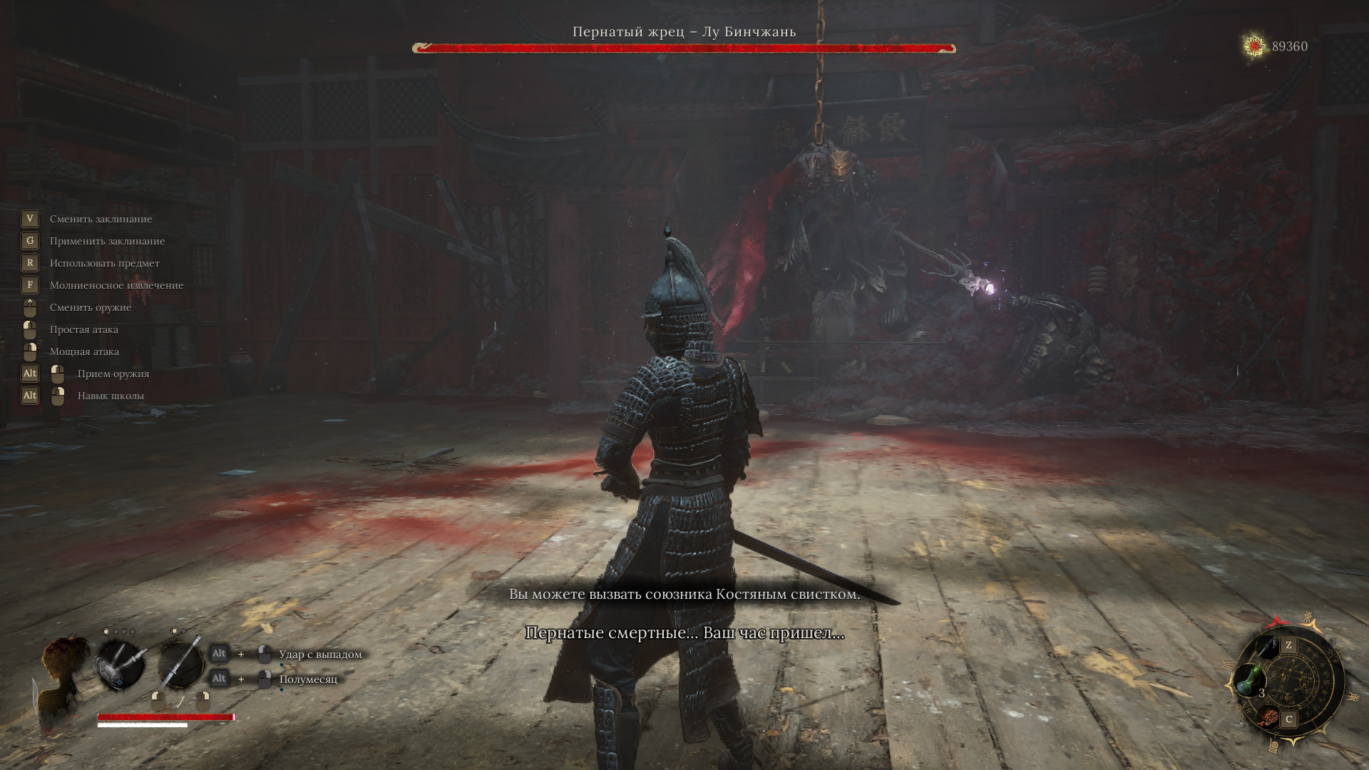 Хоть этот босс и огромен, ее движения достаточно легко телегарфируются. Она либо делает выпад, либо прыгает к вам. Также Лу Хунлю стреляет струей крови, которая вызывает порчу. Лучше всего дождаться, когда она к вам приблизится, уклониться, а затем выполнить быстрый удар, когда босс повернется к вам лицом. Учтите, что ее трансформация на 50% здоровья делает ее ё временно уязвимой, так что продолжайте атаковать Лу Хунлю и в этот момент.