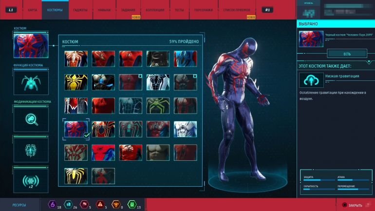 В игре станут доступны разнообразные костюмы Человека-Паука, которые можно открыть по мере прохождения сюжетной линии. Каждый из таких костюмов имеет специальную особенность, которая в свою очередь придаст Питеру ту или иную способность.