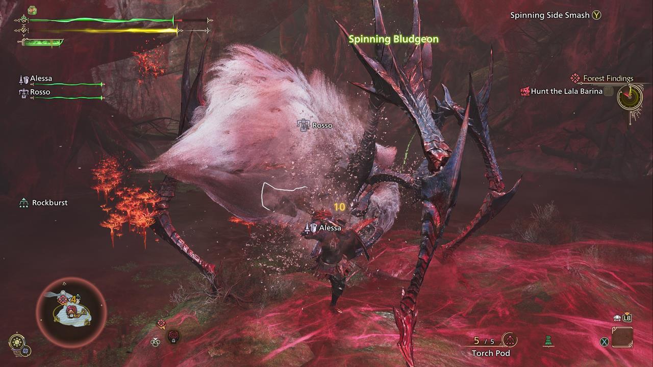 - Лала Барина (⭐⭐⭐⭐) — требование: ранг охотника 10, обитает: Багровый лес, Руины Виверии.