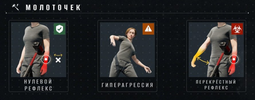 Все симптомы открыты сразу. Важно помнить, что человек с симптомом «Гиперагрессия» ответит ударом, если вы примените на нем молоточек. Это происходит только один раз и не приводит к смерти, но из-за этого легко ошибочно принять реакцию за полноценное нападение и случайно убить выжившего. Такого человека нужно отправить в карантин.