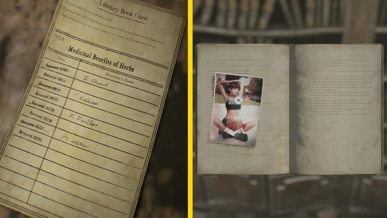 Вторая часть — поиск книги, которую ранее взял Альберт Вескер. В ней — фото Ребекки Чемберс в спортивной форме. Можно открыть кейс Вескера и получить очки, похожие на его оригинальные.