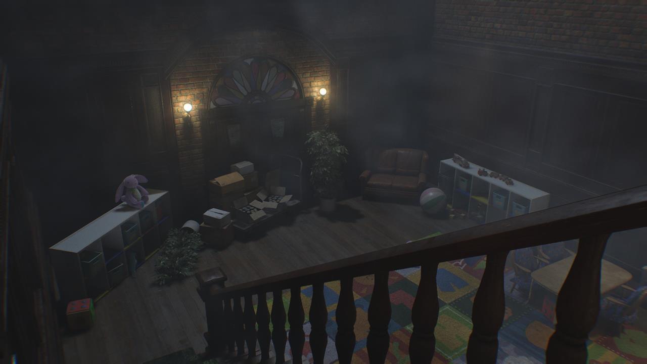 Как в кампании Клэр в RE2 Remake, здесь есть секция для скрытного прохождения за беззащитную Эмили. После полицейского участка. Зоны знакомы — детские комнаты с игрушками, лестница в главный холл.