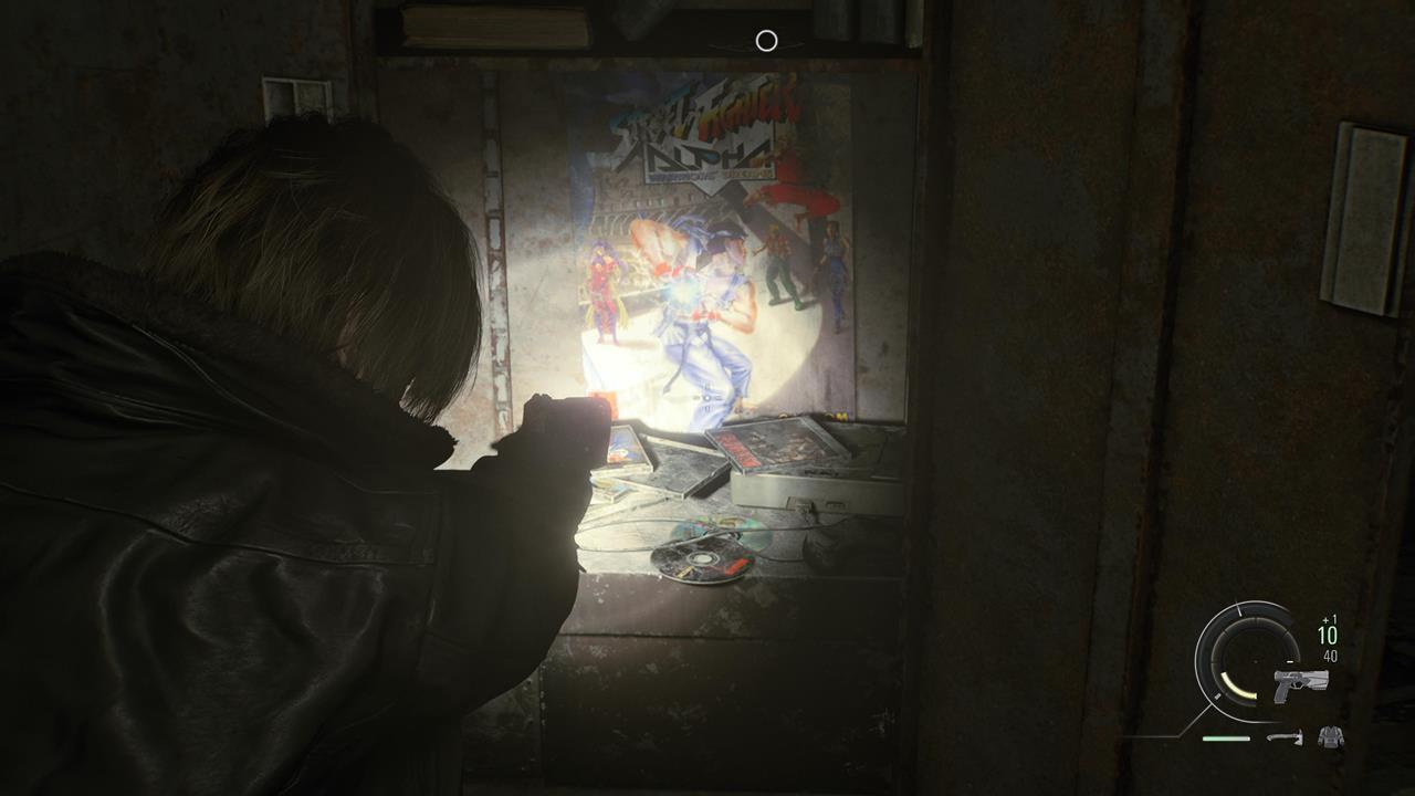 Любая зона полицейского участка полна пасхалок: путь, планировка комнат, приветственное слово WELCOME из разноцветных букв, заметки Марвина Брана, фигурки Мистера Енота, труп полицейского с отсутствующей нижней челюстью, загадки с решениями, имена выживших — сотрудники Capcom, а также куртка Криса как отсылка к альбому Queen.