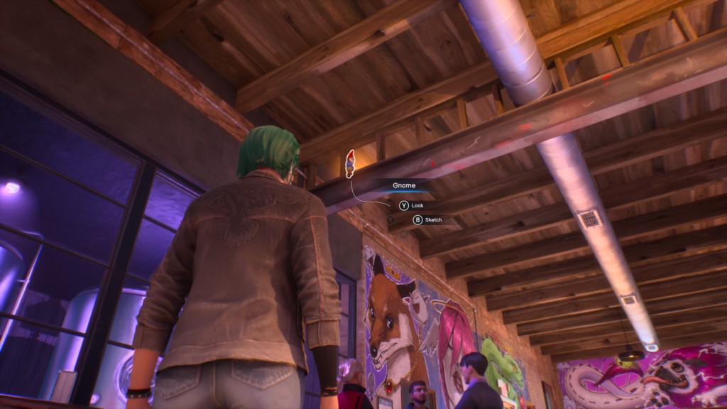 Когда снова окажетесь в «Кусачей Черепахе», играя за Хлою, прежде чем выдвигать обвинения, посмотрите на гнома на балках под потолком. Посмотрите на него один раз, затем снова, и сможете сделать рисунок.
