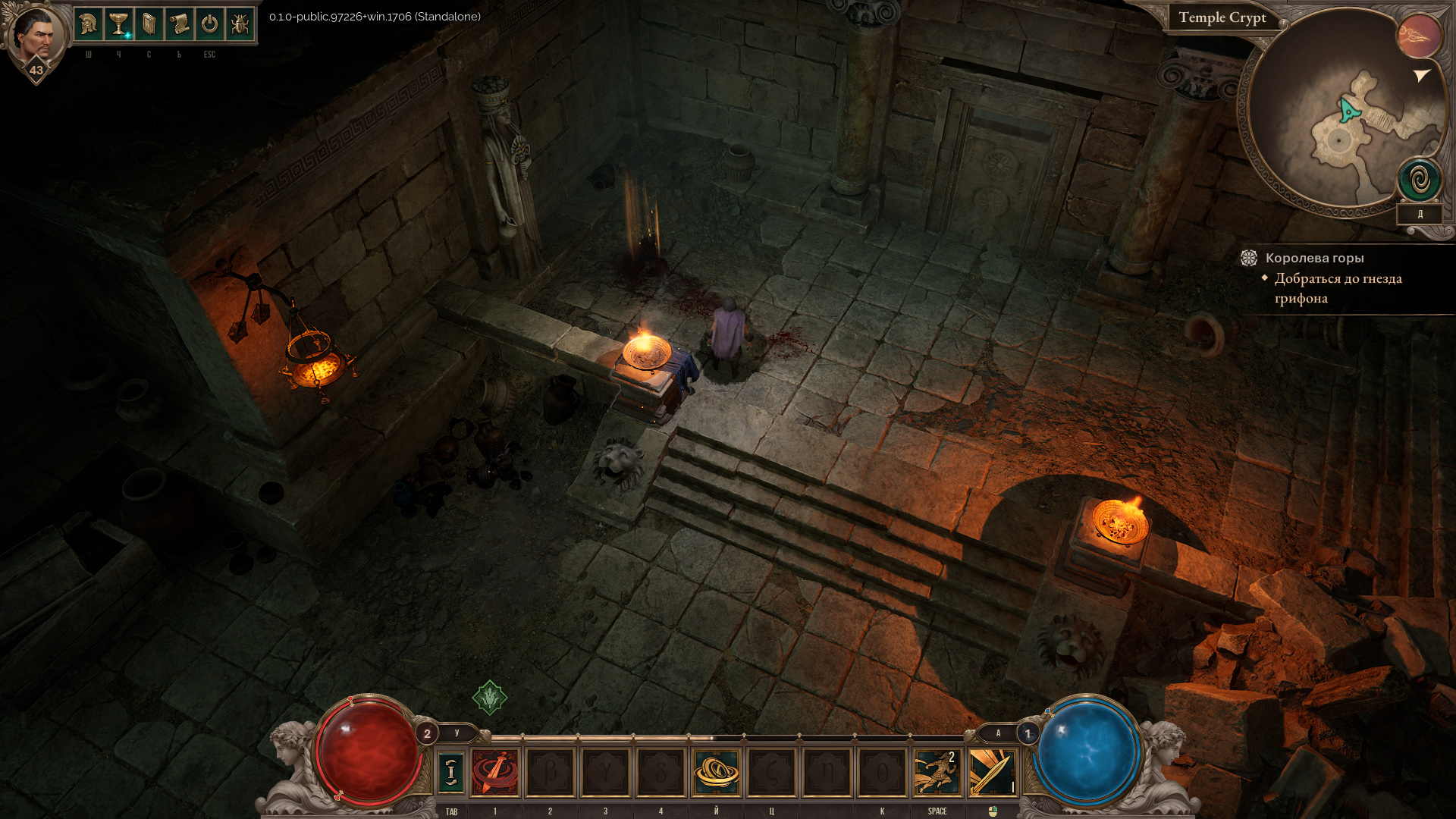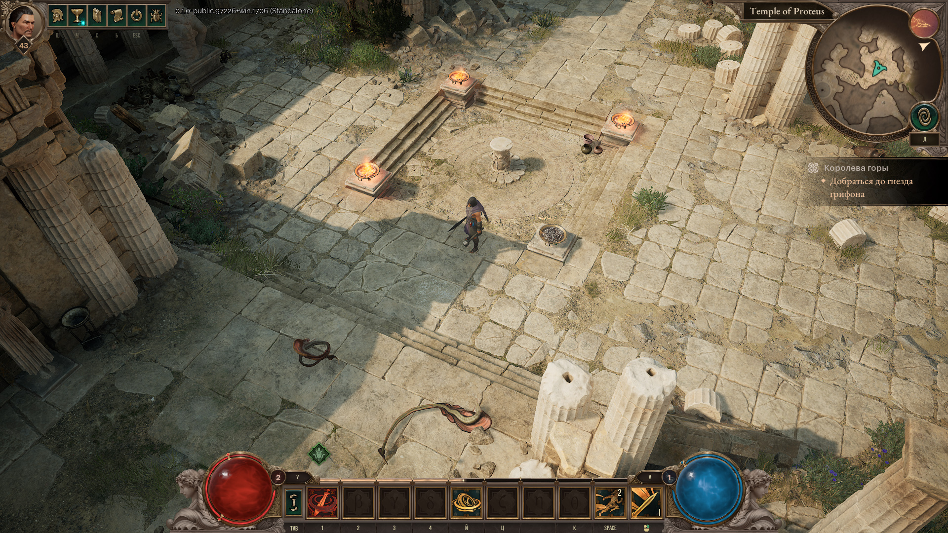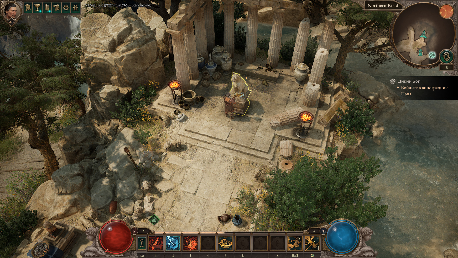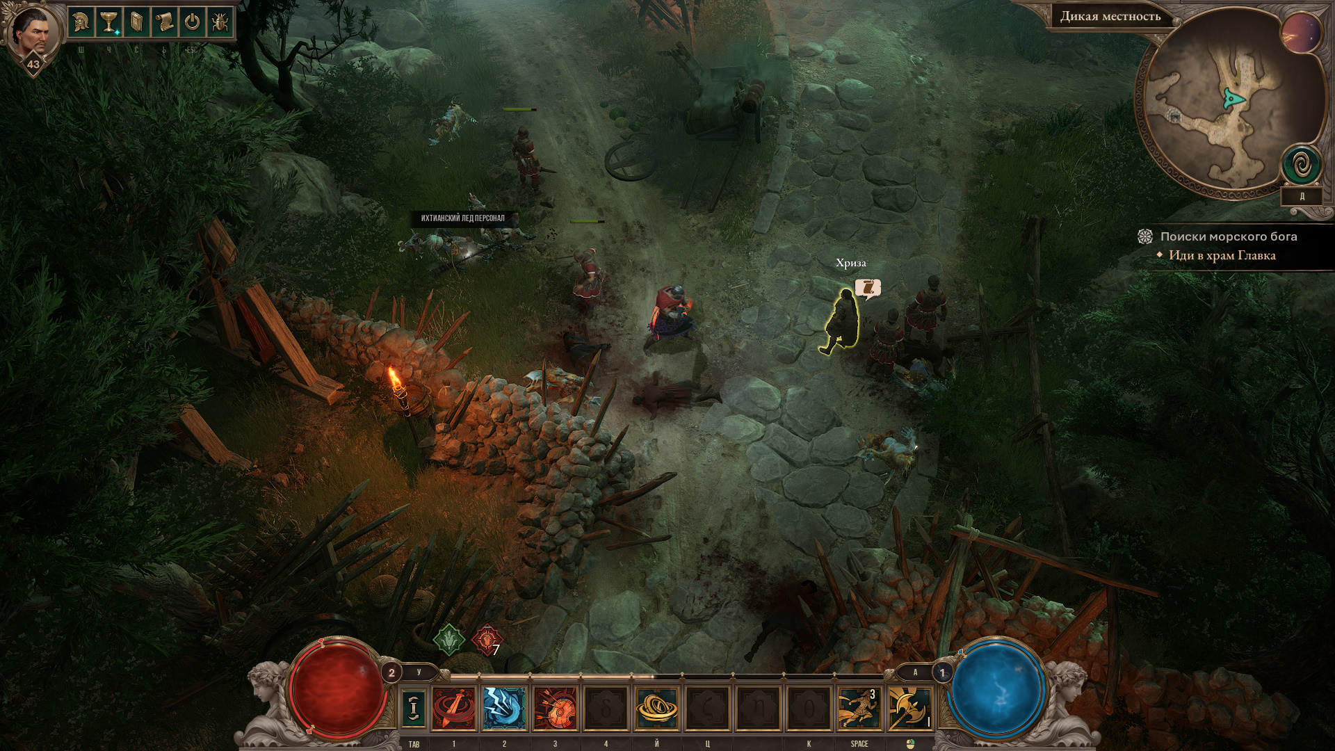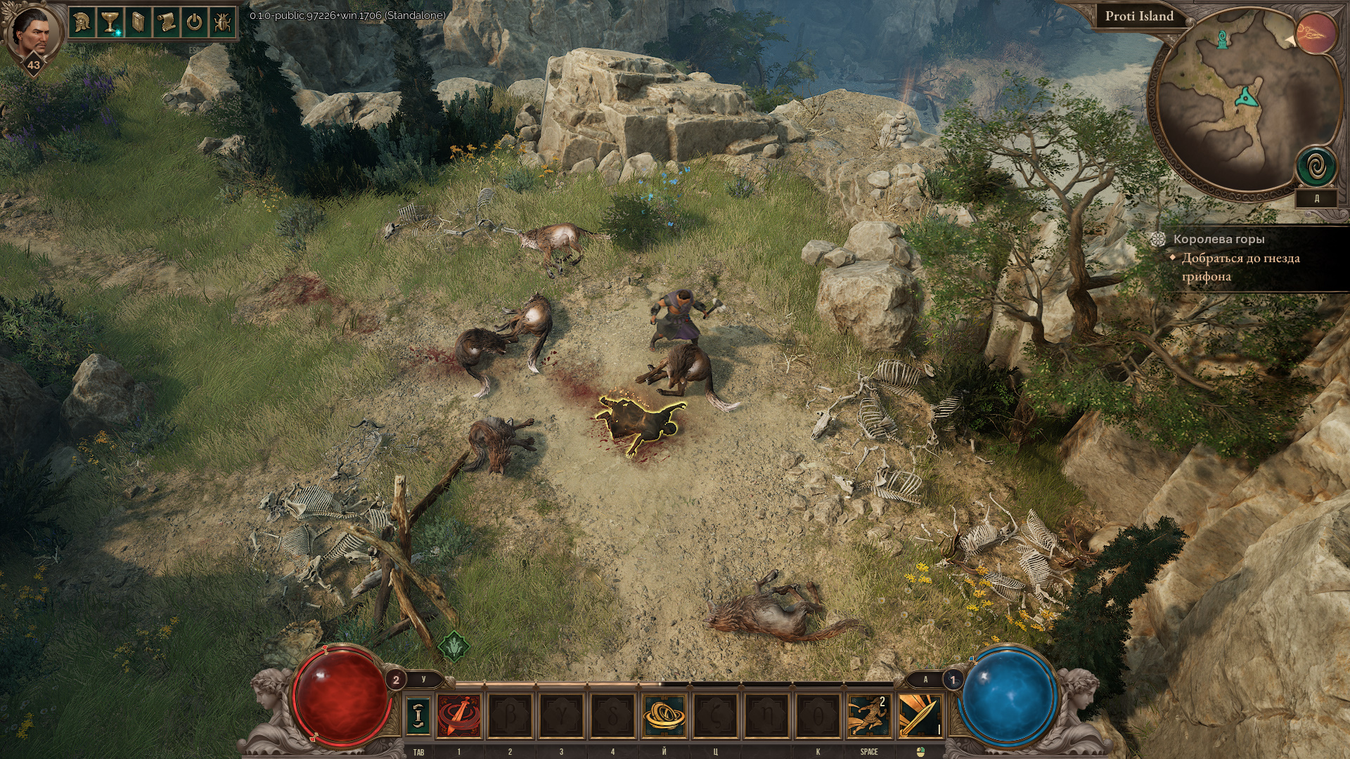 Когда убьете всех трех, на севере ищите вход в склеп. Перед ним стоит памятник, и три чаши должны светиться. Если все так, склеп будет открыт. Войдите внутрь и разожгите в самом конце две чаши. Победите Аристомена и его армию нежити (скелеты исчезнут, когда будет повержен Аристомен). С Аристомена выпадет огромное количество добычи желтого ранга. Поговорите с ним, и появится еще больше лута. Также выпадет череп Аристомена, который можно использовать для его повторного призыва (через алтарь в Пиргосе).