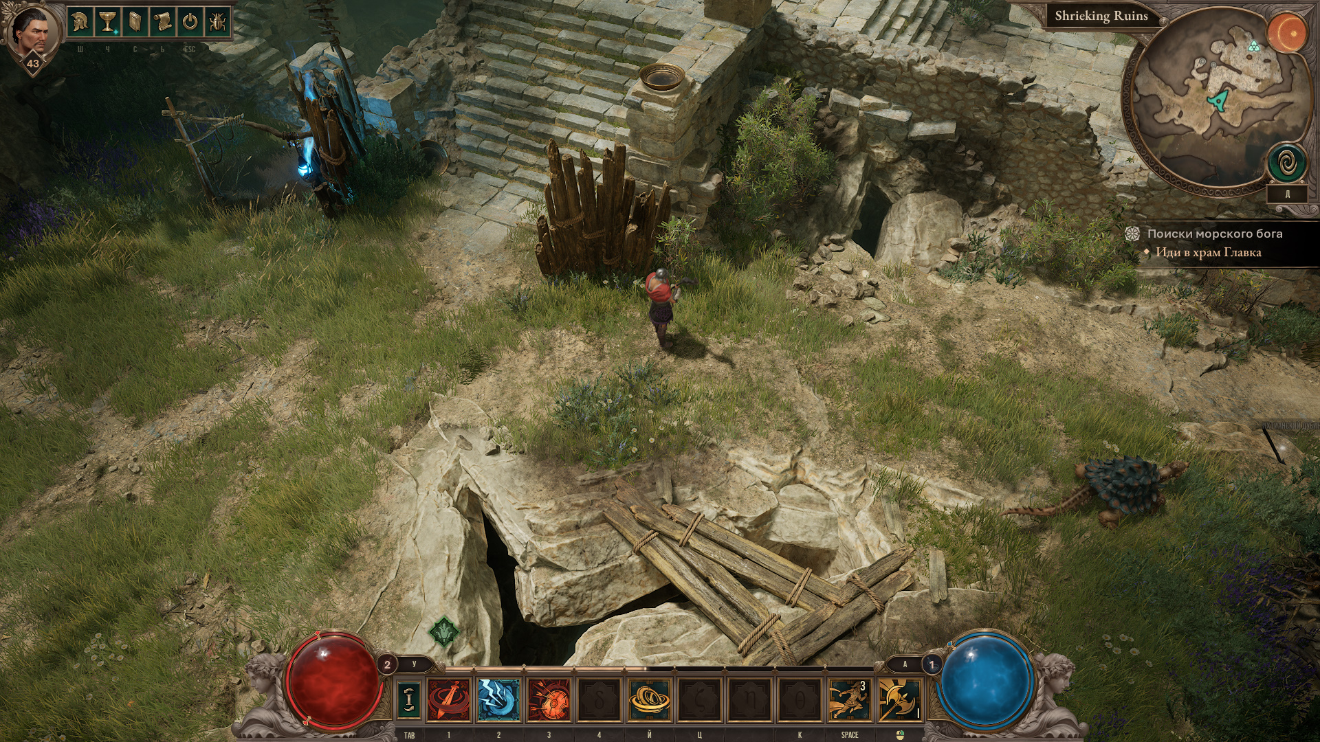 Если задание началось, выйдите с руин и увидите справа черепаху. Найти животное можно и в другом месте. Ваша задача — заагрить зверя и заманить в святилище. Если жаровня в центре начнет светиться, значит, вы все сделали правильно. Просто убейте черепаху, и задание завершится.