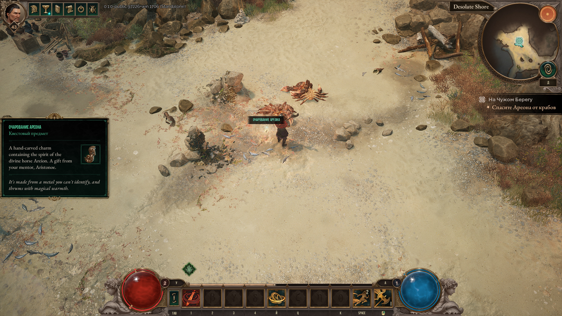 На заброшенном берегу вы обнаружите квестовый предмет — амулет/талисман Ариона. Как только его поднимите, к вам присоединится конь Арион. Он будет изредка комментировать сюжетные моменты и не более того. Отдельного применения амулета Ариона в игре нет.