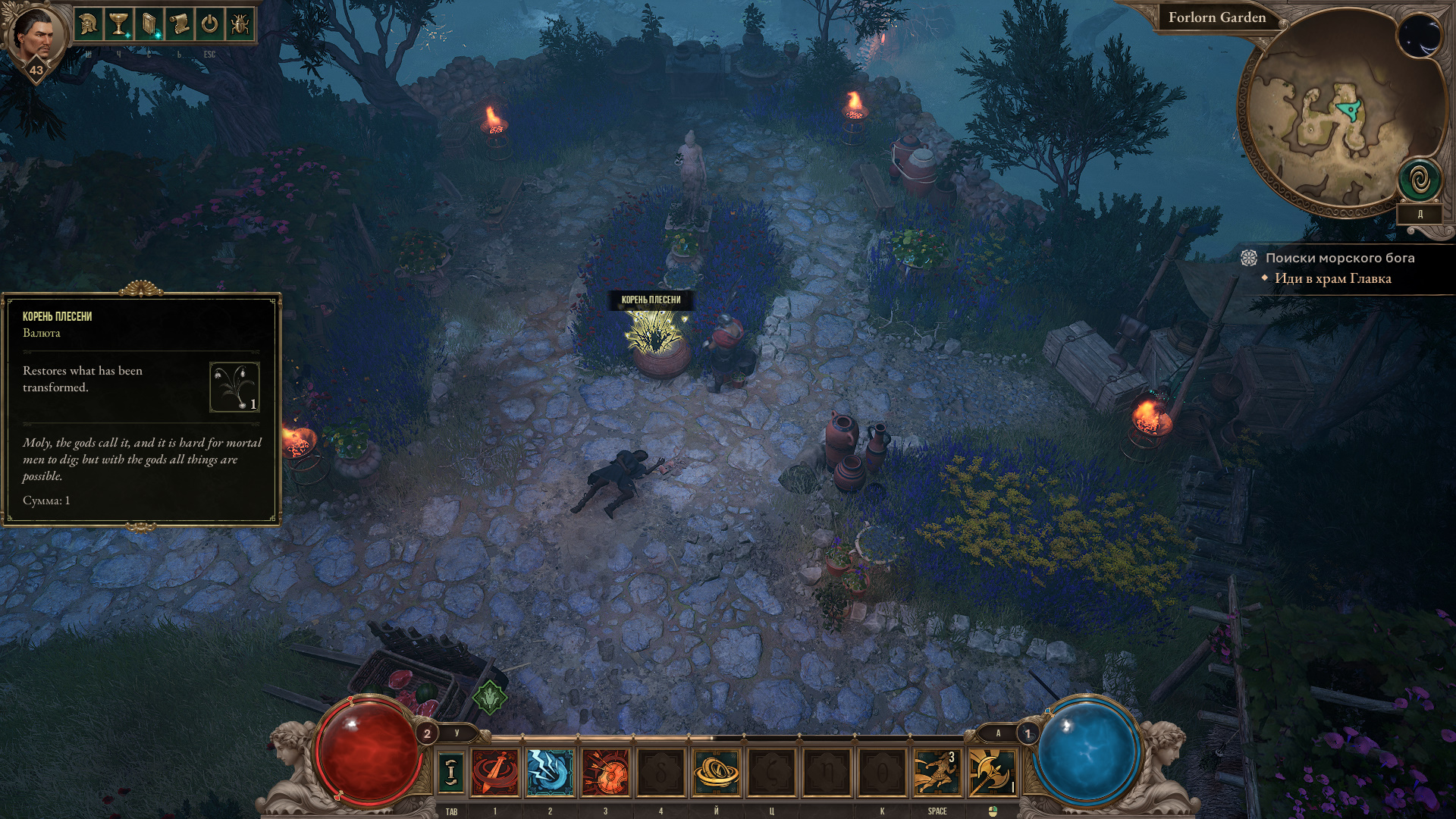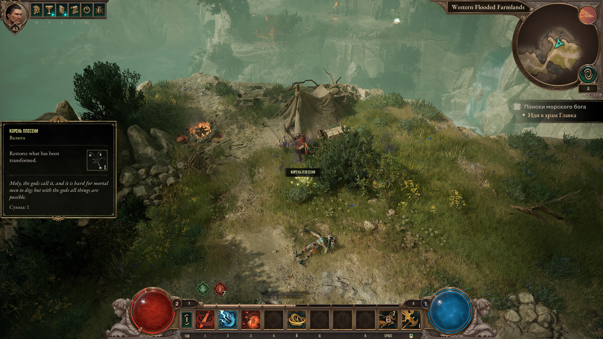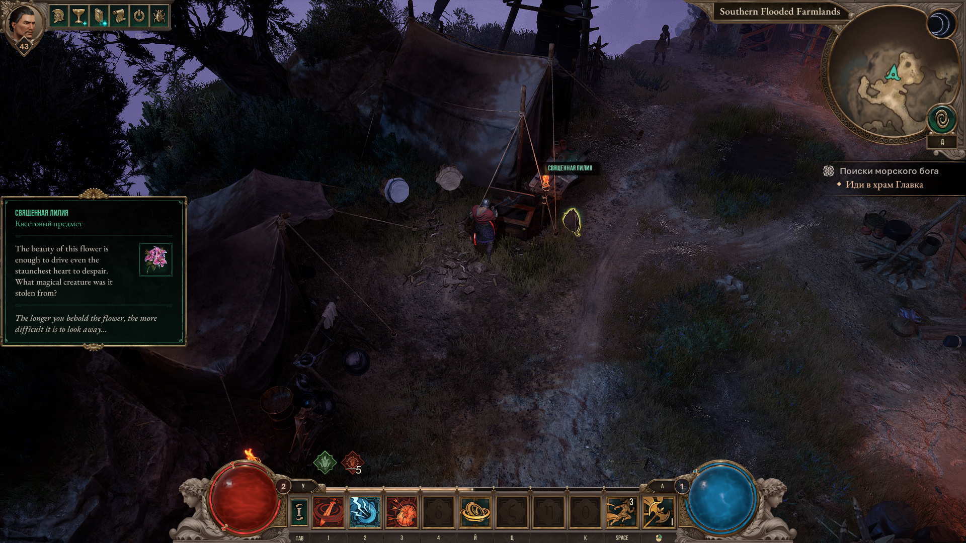 P.S. На территории лагеря Бронзовых львов, в одном из сундуков лежит квестовый предмет — священная лилия. Она нужна по заданию «Наяды и козы», но уже после того, как вы найдете корень плесени (моли, молибденовый корень), примените у ведьмы, чтобы вернуться в человеческий облик, и поговорите с ней.