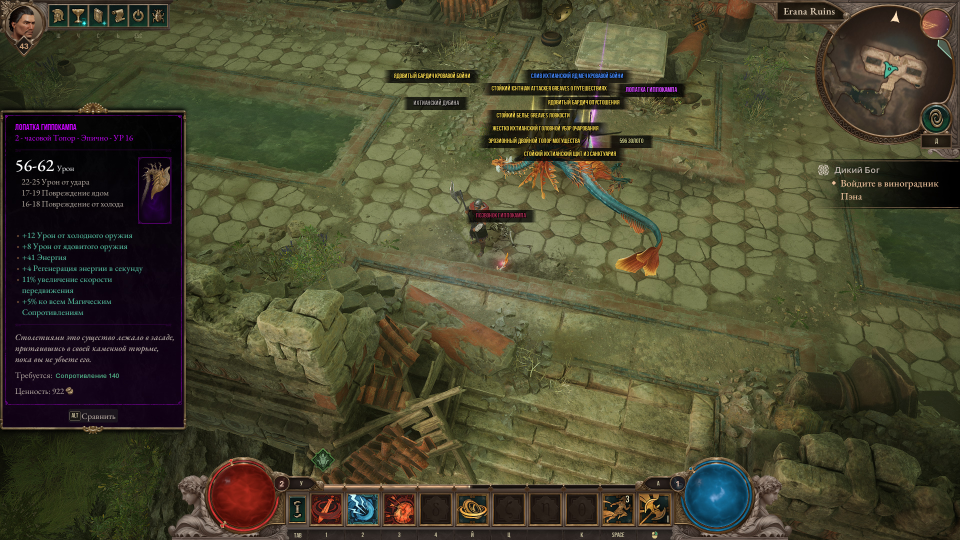 Далее вам придется сразиться с самим Гиппокампосом, Пожирателем заблудших. Битва сложная, и если не получается, просто вернитесь сюда позже. Среди прочего лута и эпичного оружия выпадет позвонок Гиппокампа. Его можно использовать для повторного призыва босса.