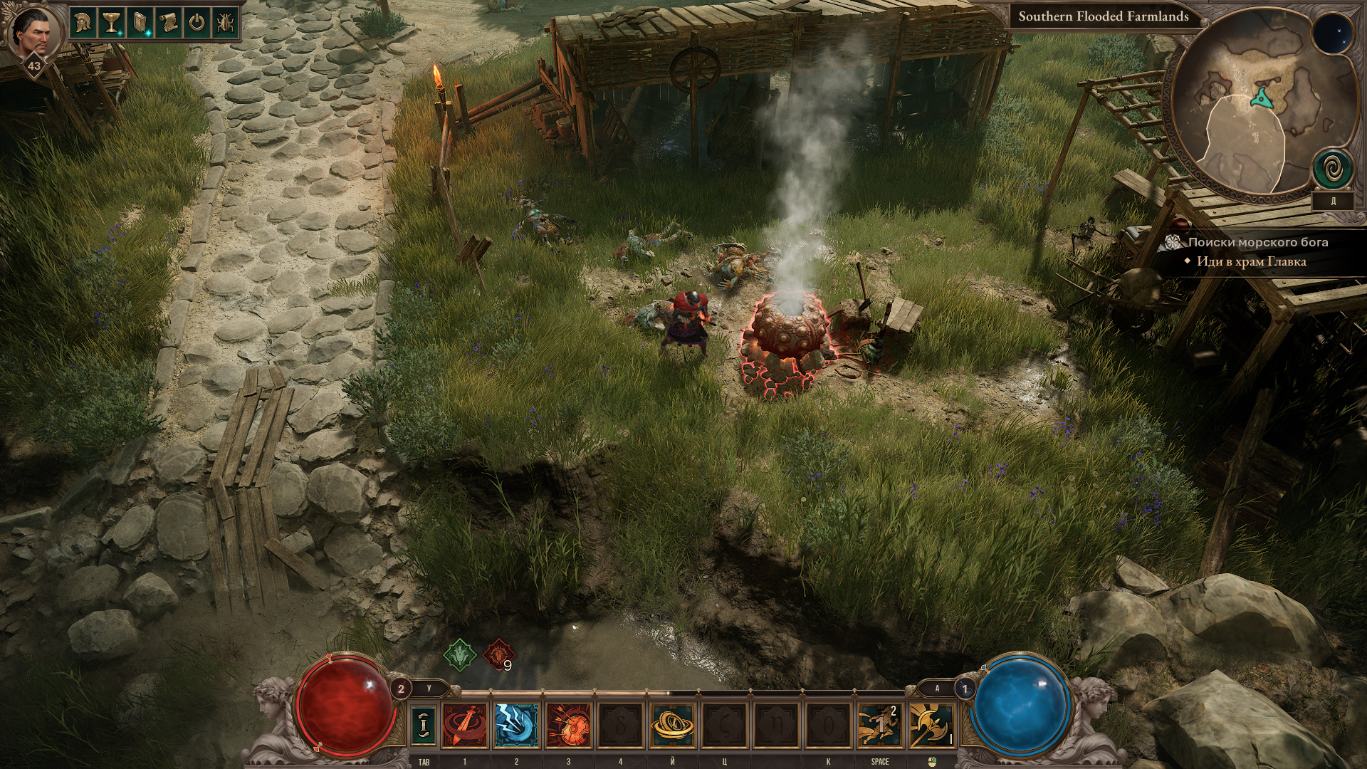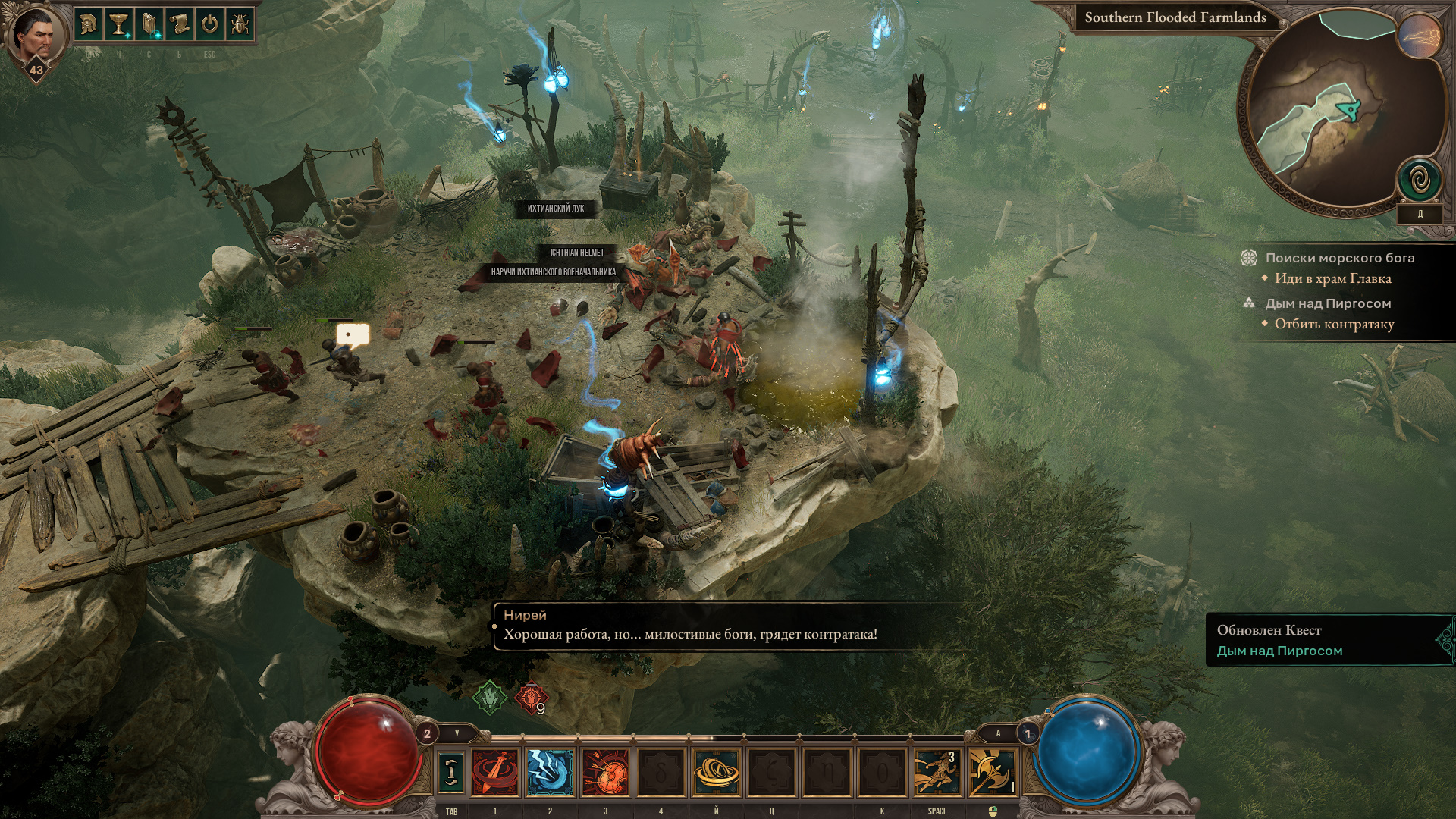 Спустившись в угодья, доберитесь до отмеченной области немного на севере, помогите ополченцам уничтожить монстров. На самой вершине нужно разрушить жаровню, откуда идет дым. После отразите контратаку рыбоголовых, а затем побеседуйте с Ниреем (который возглавляет этих ополченцев). Вернитесь к Хризе, чтобы завершить задание.