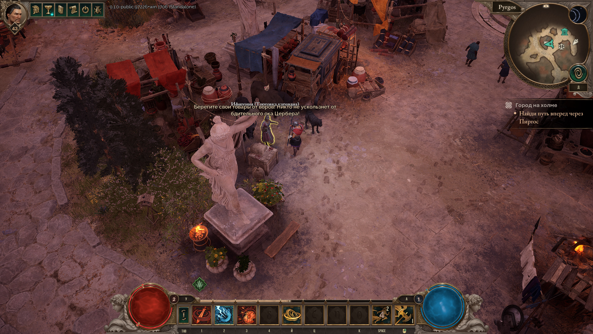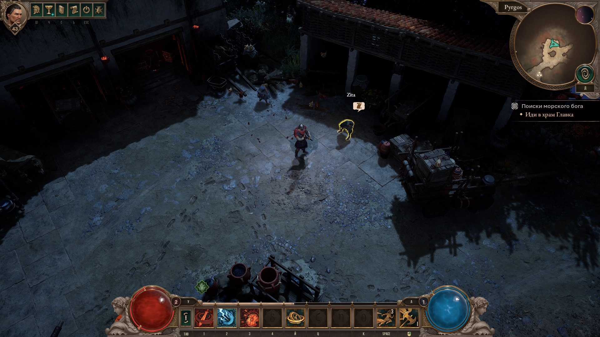 Добравшись до Пиргоса, внимательно осмотрите рыночную площадь. Помимо трех торговцев можно встретить отмеченную иконкой «сундука» Ифигению. Через нее вы можете отправить вещи в хранилище (если не хотите их продавать, но при этом желаете освободить инвентарное пространство).