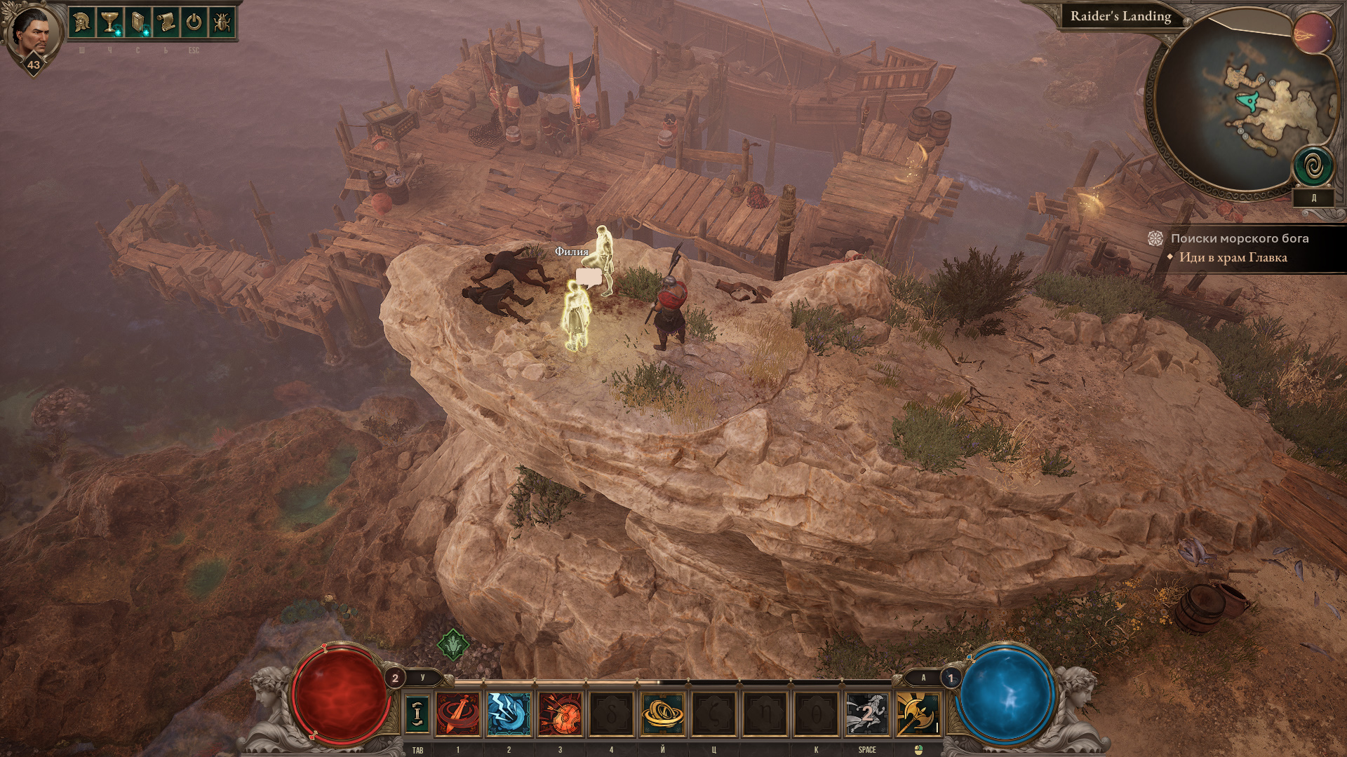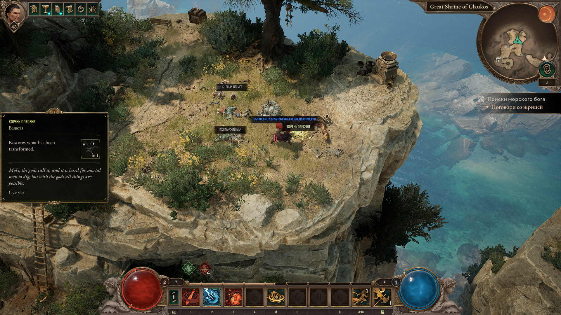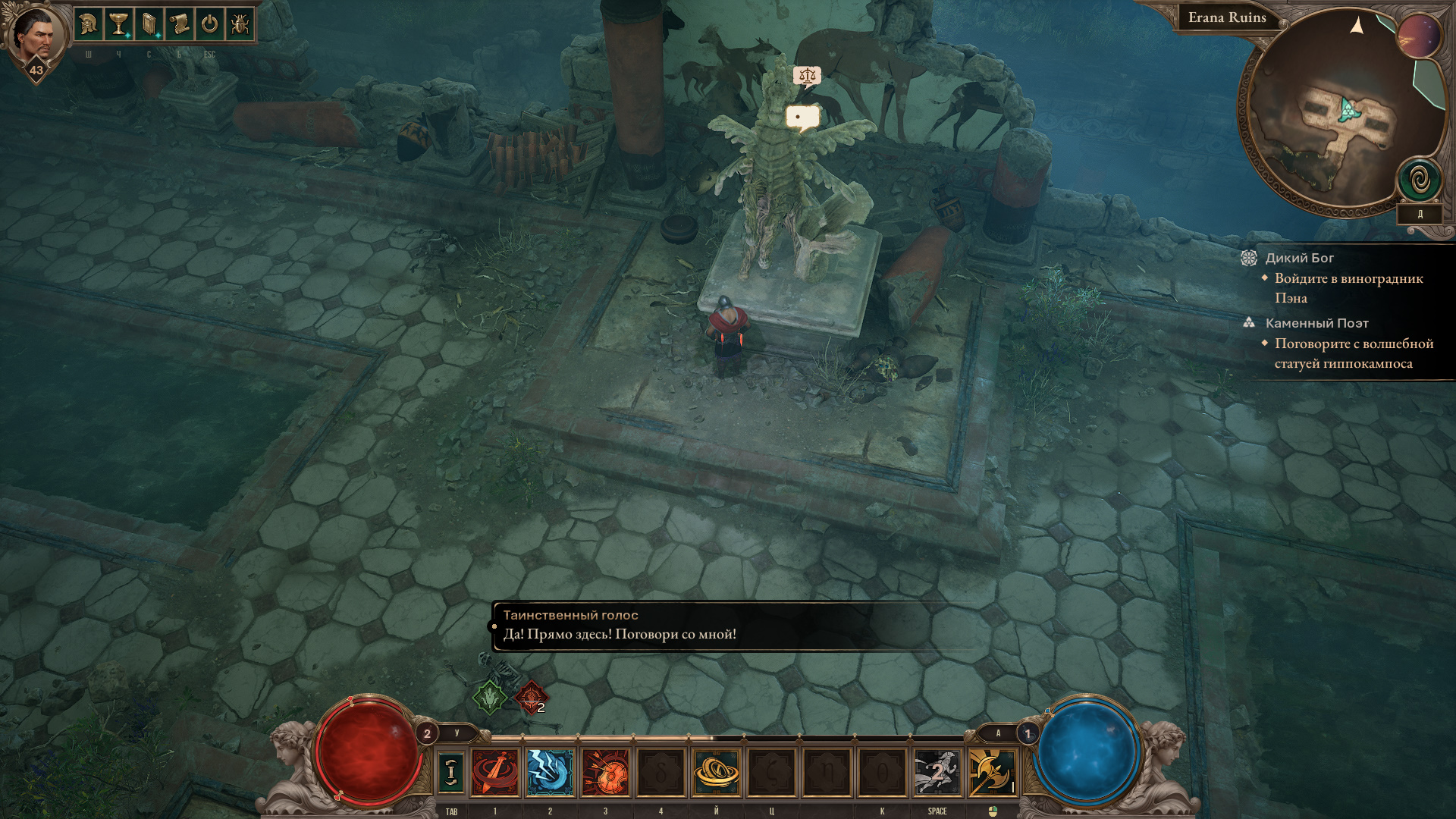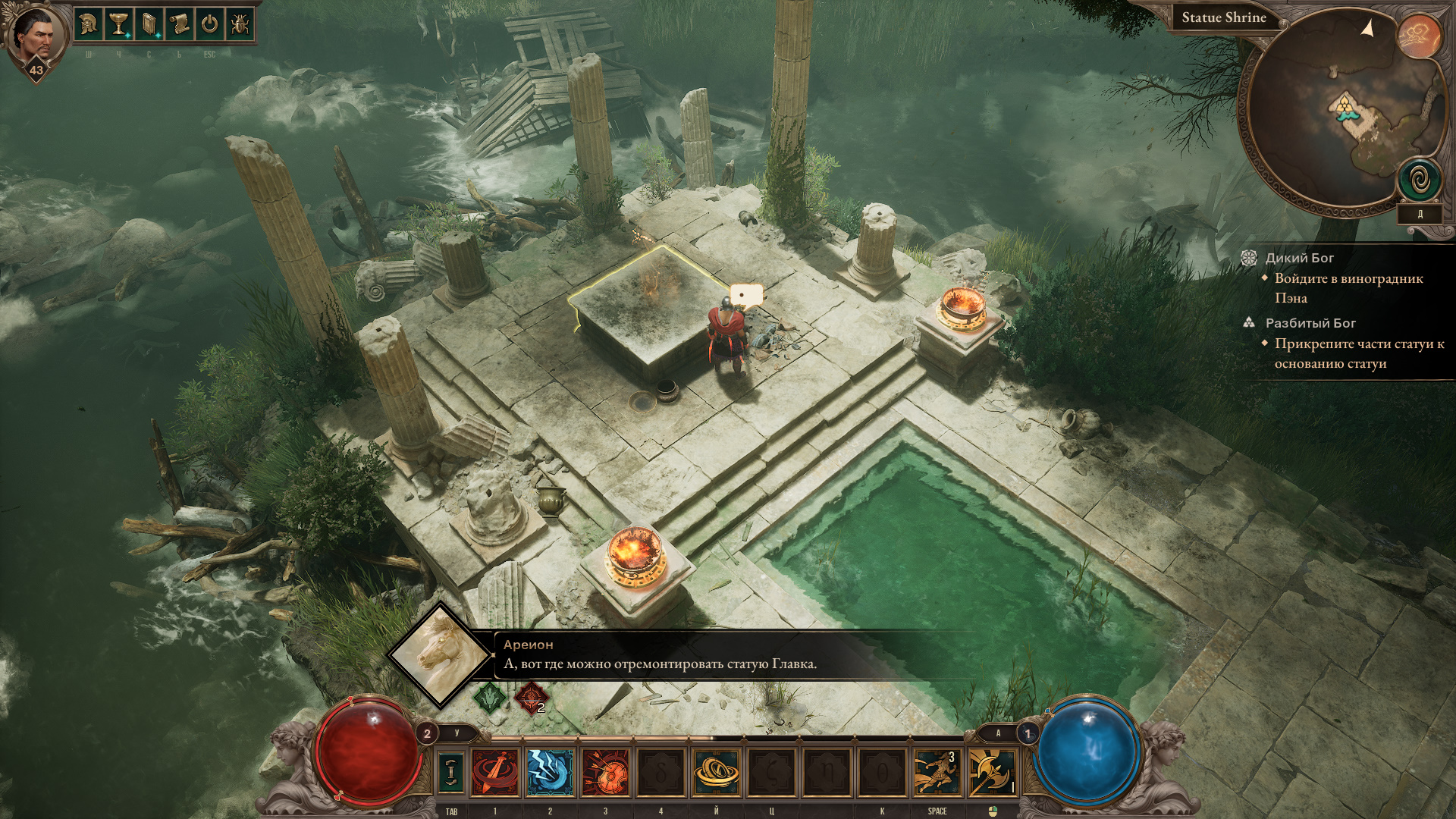При этом останется неотмеченной область, где следует эту статую починить. Мы показали ее на скриншоте ниже. Принесите все четыре детали, взаимодействуйте с постаментом, и квест завершится. Можете поговорить с Ифитосом, который охранял сломанный посох статуи Главка.