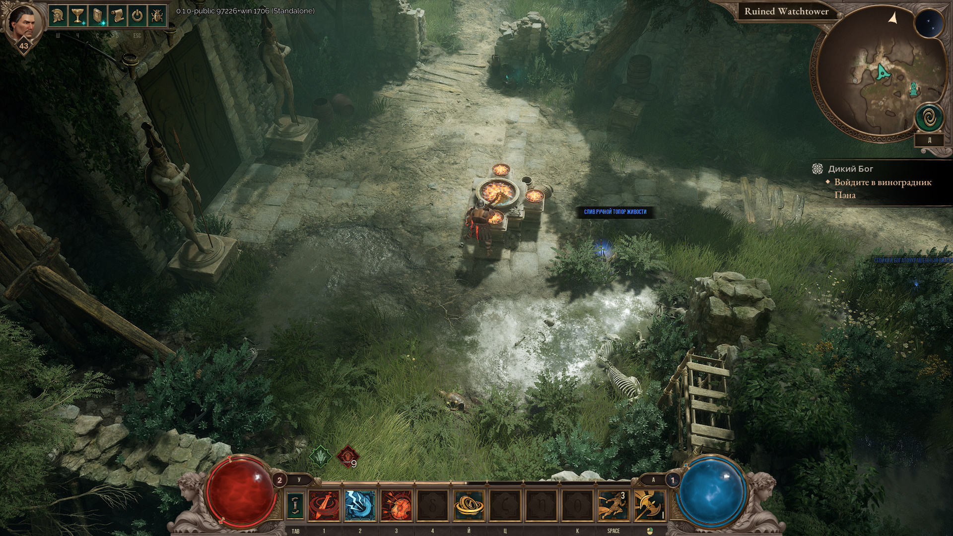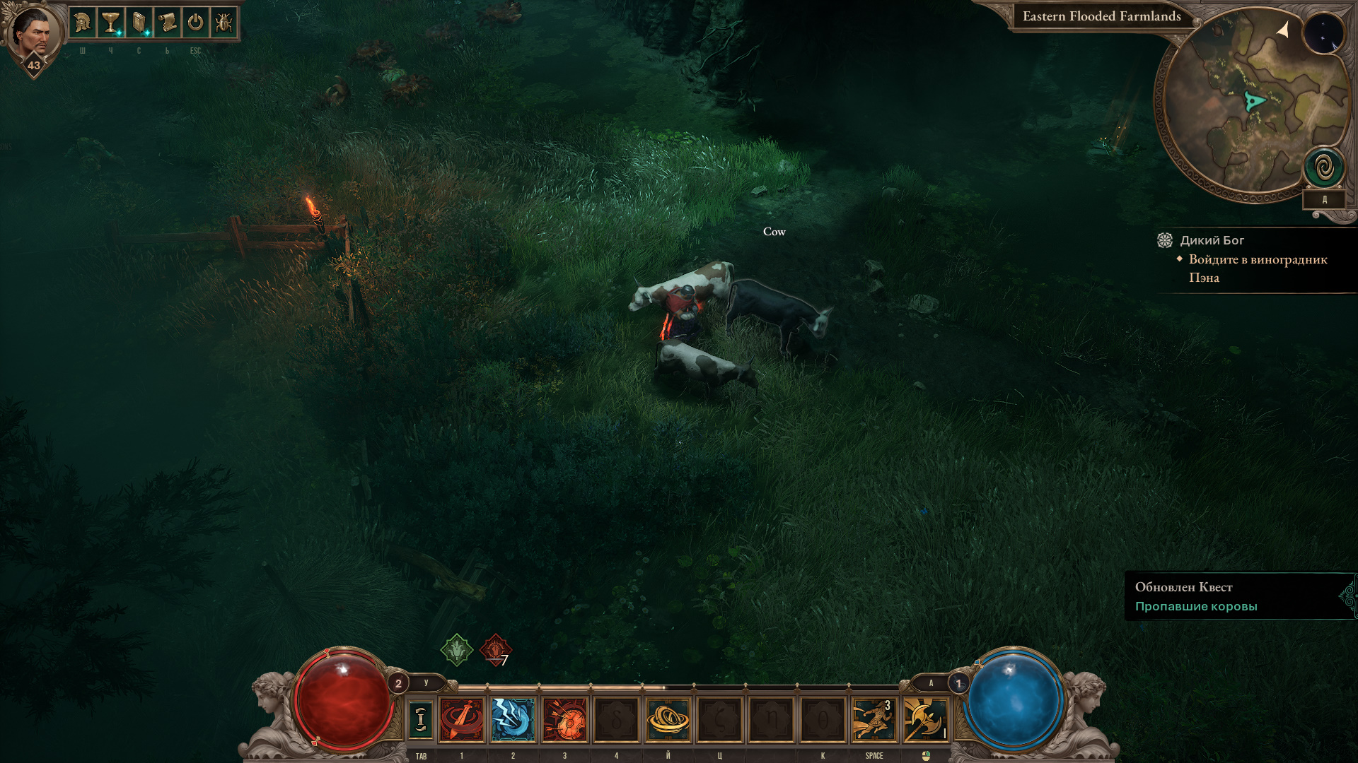 Как только получите второе мастерство, выйдите наружу и сверните вправо. Убейте нежить в тупике и увидите закрытую дверь. Жаровня, с которой нужно взаимодействовать, спрятана за деревьями к северу от двери, буквально в 5-10 шагах.