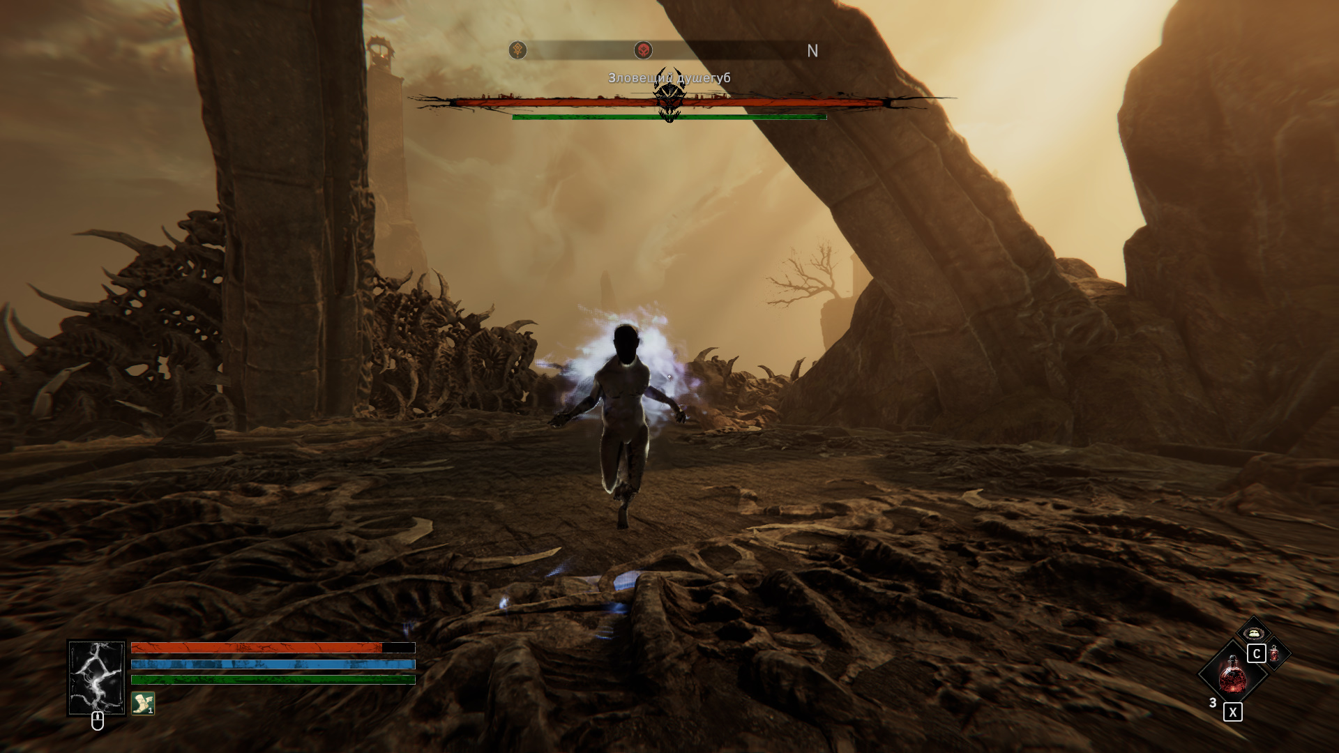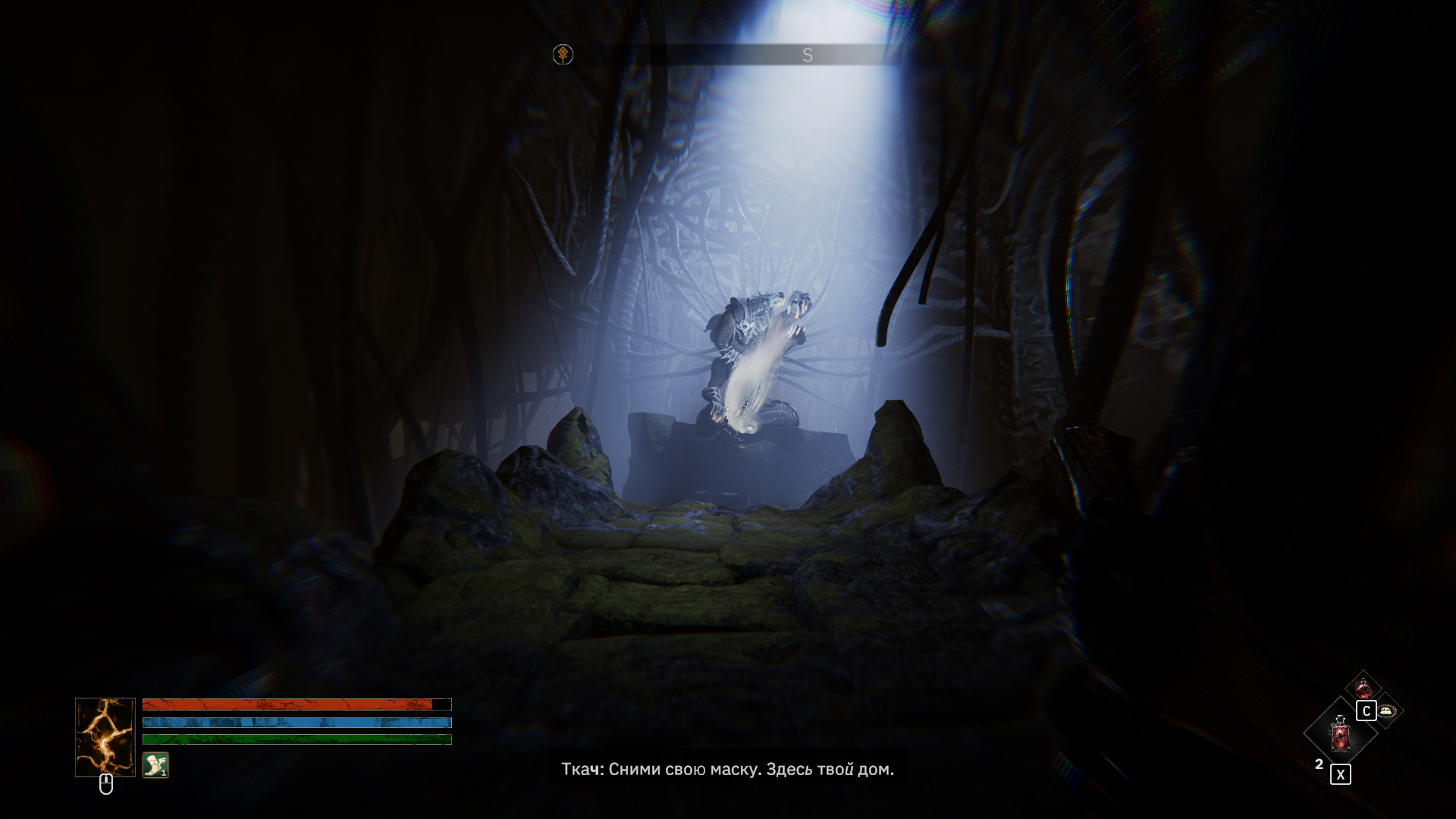 Еще одна дверь, которая открывается при помощи Экскалибура. Получив меч по сюжету, откройте ее и пройдите внутрь. Убейте пару врагов, Кровавую мерзость и поговорите с Ткачом, чтобы получить важную информацию по лору игры, также необходимую для дополнительной концовки.