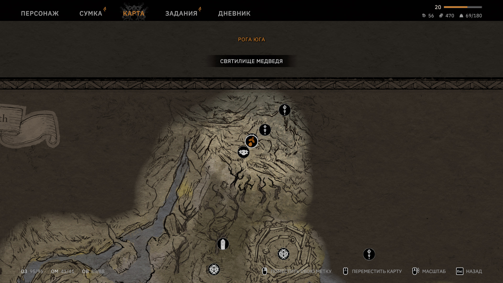 Расположена буквально с левой стороны от святилища медведя. Есть разбойники, разная добыча, записки, кольцо из старой стали, повышающее выносливость и здоровье на 3%. Просто убедитесь, чтоб обыскали все закоулки.