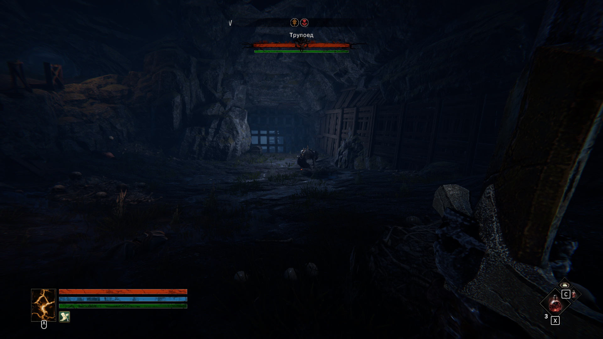 Расположена на южном побережье, рядом с точкой быстрого перемещения «Полуостров». В этой пещере есть трупоеды и крестьяне. Можно найти жетон хранителя — мертвый хранитель лежит на дне водоема между пещерой с множеством трупоедов и главным трупоедом локации (с отдельной шкалой здоровья, усиленная версия обычного трупоеда, большего размера).