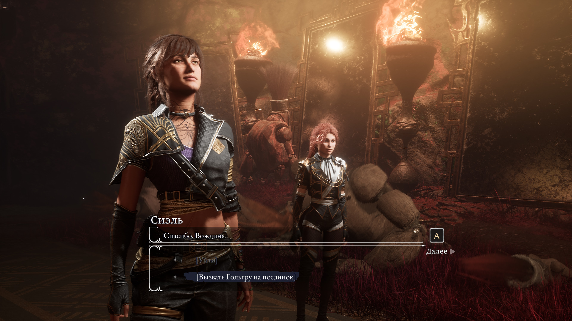 Затем снова поговорите с Гольгрой. Она предложит сразиться с вами — испытание для тех, кто ищет испытаний. Победить можно, но потребуется идеальная реакция, плюс прокачка. В общем, сделать это прямо сейчас невозможно. Вместо этого запаситесь терпением и вернитесь сюда ближе к финалу игры!
