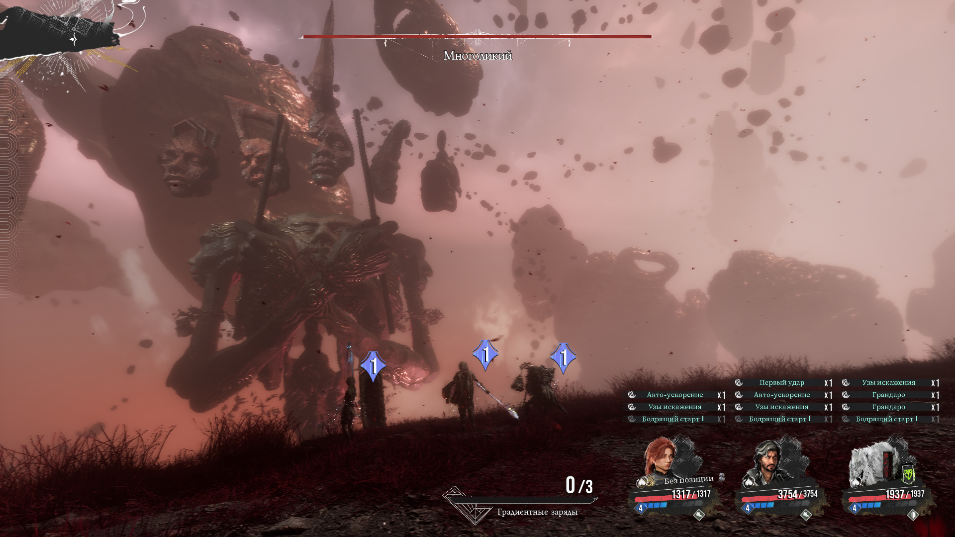 У Версо есть прекрасный контр-градиент «Саботаж», ставящий метку, и после метки можно использовать навык «Завершитель», чтобы нанести 6 ударов по 9999 единиц урона. Да, можно подождать, когда у вас появится пиктос, срывающий верхнюю планку по урону за удар, но я победил Гарганта уже сейчас. Главное — изучить его движения, а также не атаковать той стихией, в которой он находится. В целом ничего сложного в этом сражении нет. Просто оно затяжное!
