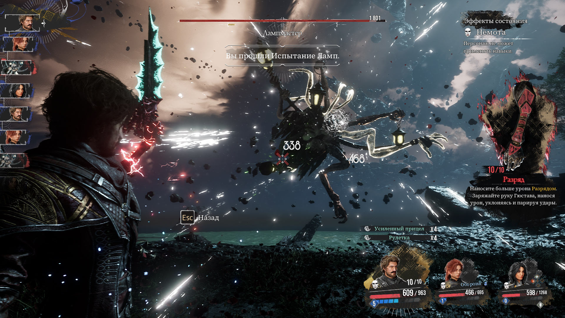 Это заскриптованная дуэль. Победить босса не получится. Просто накопите заряды и активируйте «Разряд» Гюстава.