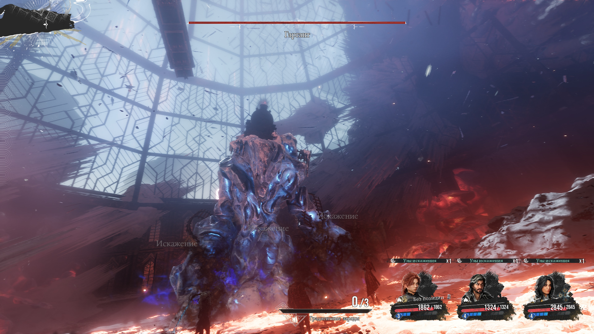 Когда его здоровье опустится ниже половины во второй фазе, босс наложит на вашу группу эффект искажения — это статус, из-за которого лечение наносит урон вместо восстановления здоровья. На иконках персонажей появится символ перевернутого сердца, а сами герои примут вид зомби.