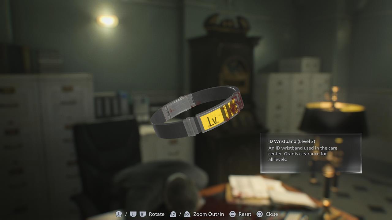 - Грейс — после получения ID-браслета 3-го уровня нужно переместить Эмили в офис начальника службы безопасности. После вы должны спуститься в подвал. В этот момент последний раз можно сразиться с чанком, играя за Грейс. Убедитесь, что все двери 1-го уровня и дверь кладовой на кухне открыты. За ними есть несколько поврежденных шкафов для Леона.