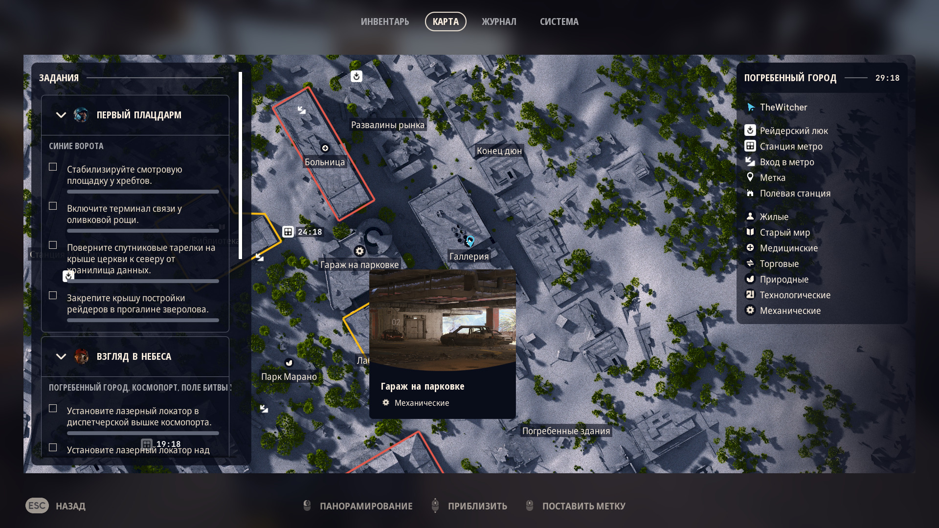 В Погребенном городе вас интересует галерея. И локатор нужно установить над ее вывеской. Важно! Вам понадобится трос, так что купите один зиплайн у Аполлона (или возьмите со склада). Двигайтесь на крышу галлерии.