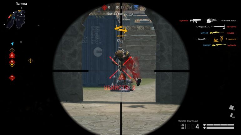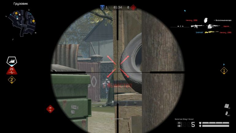 • Одна из основных точек для атаки. Снайпер редко занимает такую позицию со стороны атакующей команды, но бойцы обороны скорее всего будут ожидать вашего появления на противоположной стороне. Время от базы атакующих до точки «1» импровизированной карты составит 6,6 секунды.
