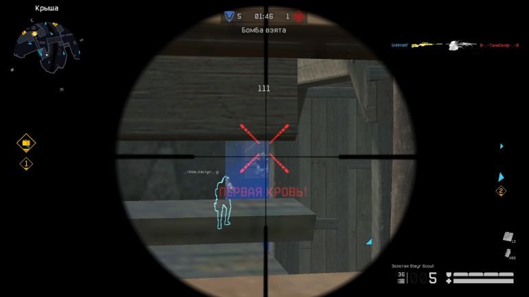 • Игрок в обычном снаряжении прибудет в точку напротив почти на секунду раньше — 9,2 секунды, а в самой быстрой обуви за 8,1 сек. Если вы играете стрелком, то с вашей стороны есть хорошее прикрытие — деревянная подпорка у здания. Займите положение так, чтобы вы смогли разглядеть силуэт движущегося противника. В свою очередь врагу будет очень непросто нацелиться в такое небольшое пространство и выстрелить.