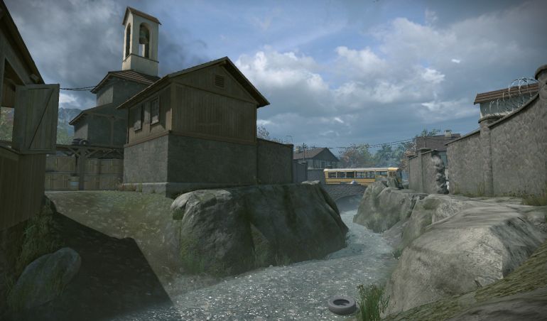 • По «воде» обычно передвигаются отчаянные геймеры, которые готовы ворваться прямо на базу противника и разнести все в пух и прах. Если вы выдвигаетесь со стороны атаки, то время до ближайшего столкновения с врагом составит около шести секунд. Важно помнить, что стрелки врага могут поджидать вас за камнями справа, на своей базе или у автобуса на мосту. Такой же временной промежуток должен преодолеть игрок противоположной команды. Если ваши намерения серьёзны — лучше бросить дымовую гранату примерно по центру, лишь за тем продолжать движение.