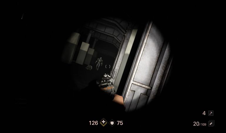 Кроме того, бункер полностью отключен от электричества. Все, что у вас будет — небольшой фонарик, освещающий область впереди. На протяжении всего уровня вы не будете понимать, куда нужно двигаться дальше — карта приведет вас к нескольким тупикам. Помимо роботов вы столкнетесь с механическими собаками. Кульминацией всего этого станет огромная комната, заполненная солдатами и двумя стационарными орудиями.