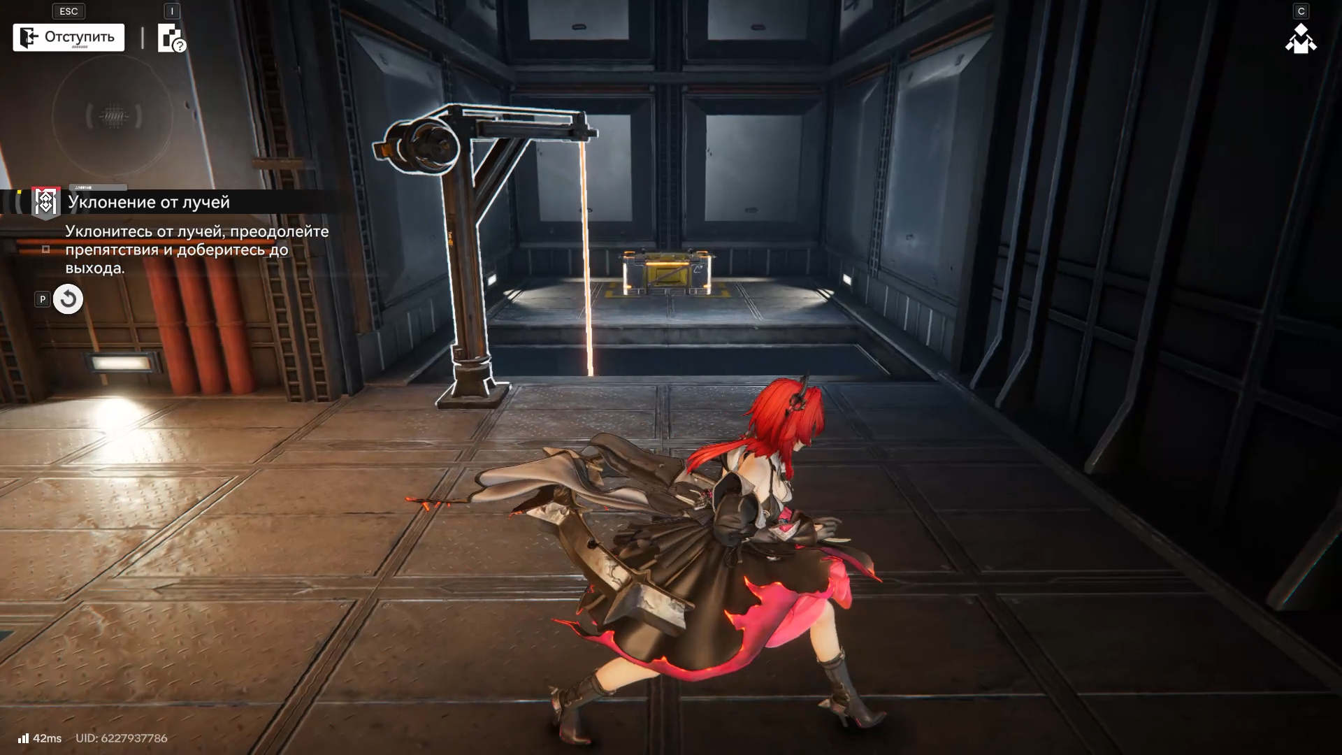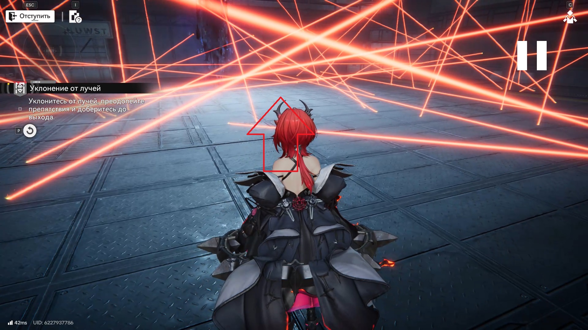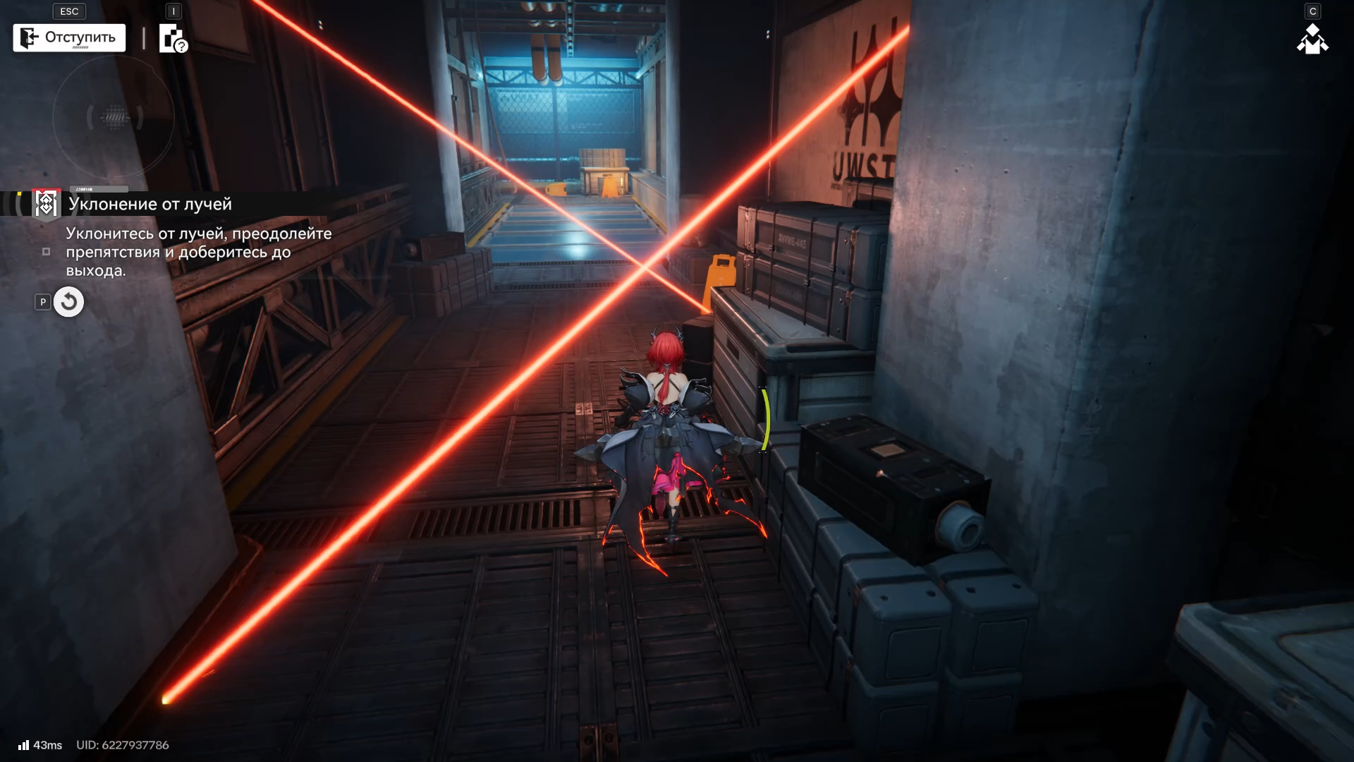 Преодолейте первые лазеры. То же самое сделайте со второй парой, а уже мимо третьей нужно пробежать в тот момент, когда лучи отключатся.