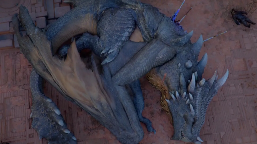 Этот удар выбьет копья из спины дракона, и вы увидите кат-сцену, после которой задание завершится.