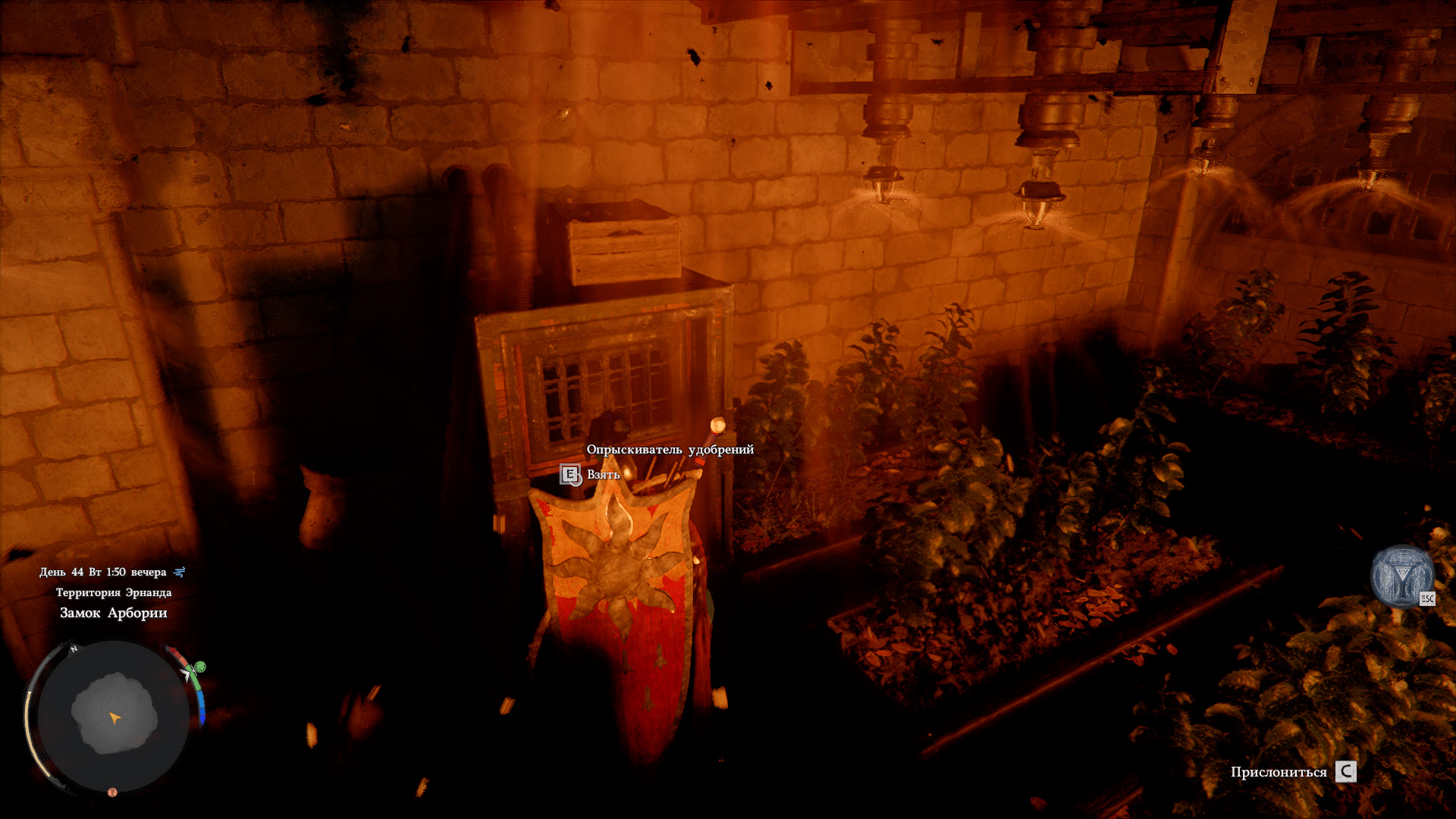Теперь вернитесь в комнату с растениями (по лестнице в начале) и заберите опрыскиватель для удобрений из отсека слева.